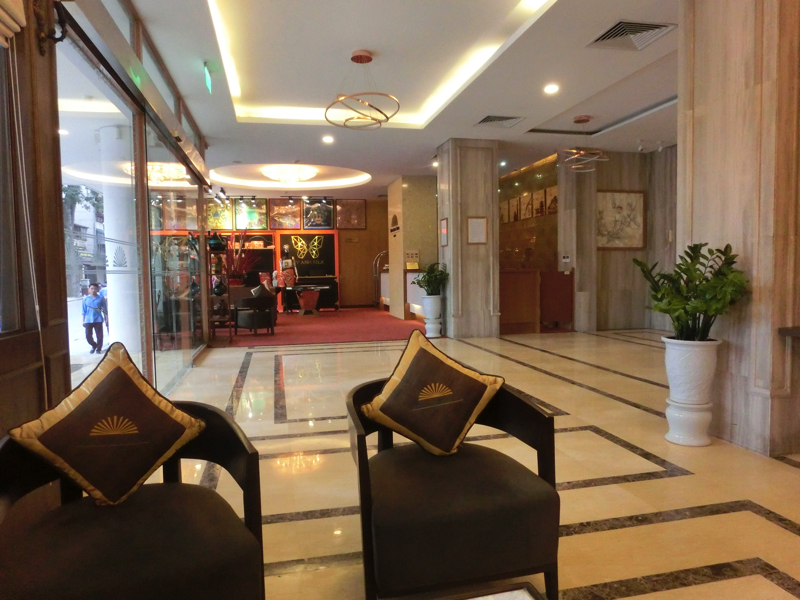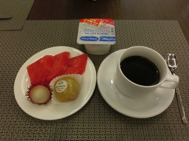 6時すぎに起床。なんか寝たり起きたりだったかな。シャワーを浴びて朝ごはんへ。2階のレストランへいくと、たくさんの人がごはん中。こんなに泊まっていたんだね。欧米の人が多いようです。ビュッフェ形式で、野菜も卵もベトナムのおかずもいろいろある。今日から5回食べるので、あまり食べ過ぎないようにね。果物にヨーグルト、コーヒーまでいただき栄養補給は十分。