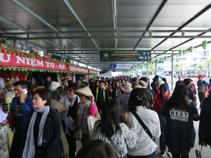 船に戻り、遊覧再開。とはいえもうあとは港に戻るだけ。この奇岩ももう見納めなので、甲板で風に吹かれながらこの景色を見ておこう。他の人たちはもう疲れたのか、ほとんどの人は下の客室にいるようだ。しばらくすると奇岩エリアからも離れたようで、まもなく港。そして出港時はあれだけ集まっていた船も人も、もはやほとんどなくがらんとした港に到着。お疲れ様でした。ここからはバスに乗って、行きと同じ4時間半の道のり。みんなお疲れなので、ほとんど寝ていたかな。途中のお土産やさんでは女子たちはいろいろ買い込んでいたがおっさん連中は何も買わず。疲れたし、リフレッシュにアイスでも食べるくらいかな。ハーゲンダッツのバーが結構高くてびっくりだが(130,000)・・・再びバスに乗り、もはや暗くなった道を走る。そして20時ごろ、ホテルに到着。