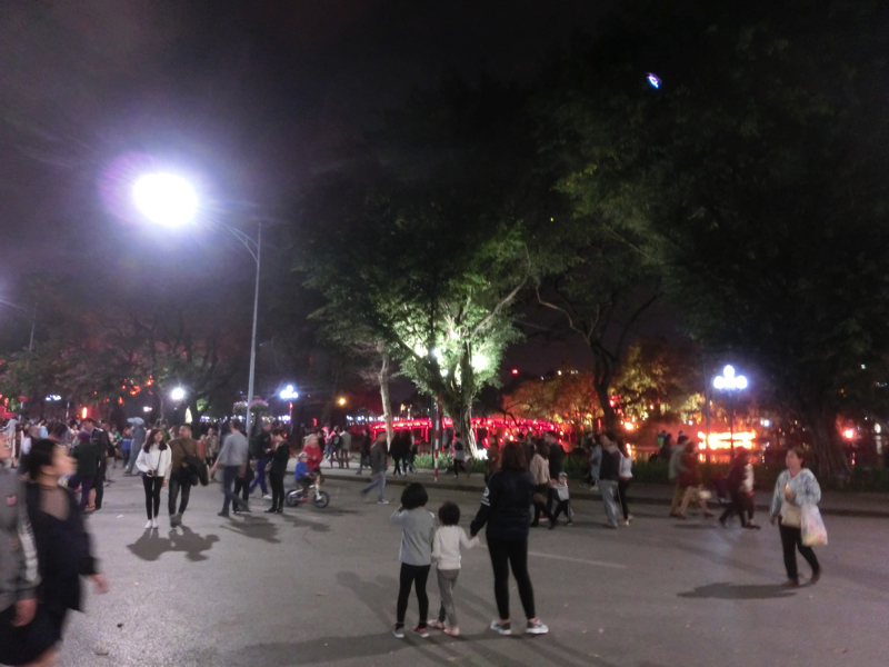 食後に少し散策しよう。雑貨や服などベトナムらしいお土産やさんを見てみる。ベトナム版京劇の面がいろんなところにある。そうか、こういうのが推しなんだな。まあ、いらないけど。湖畔に戻ると、まだまだ子供達も遊んでいる時間。日曜日なので、そろそろ帰ったほうがいいかもね。でもほかのごはん屋さんも、まだまだ家族連れも多くいて楽しんでいるようだ。