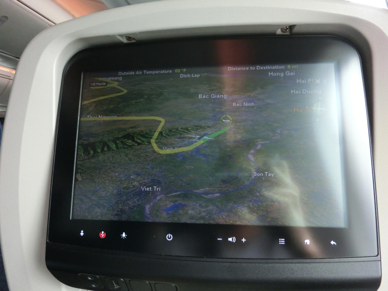 フライトは4時間ちょっとなので映画は一本見れたらいいか。ぜひ見たい、というのはないがフィンランドロケという紹介でちょっと惹かれた「雪の華」、ストーリーはシンプルだがこの前行ったヘルシンキの景色が出てくるしオーロラも出てきたので意外とよかったかな。機内食は和と洋の選択だが今日は洋で。ポテトサラダとサーモンのホワイトソースなど、本来なら白ワインと行きたいところだがここも水で。やむを得ない。おいしかったです。なんとなくゆったりしているとそろそろ到着、地図を見てるとなんでこんなにぐるぐるしてるのかな?