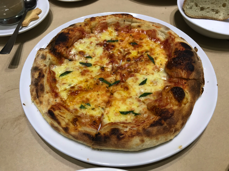 木曜は歩いて5分ほどのところにあるイタリアン。ここはもともとイタリア大使館だった場所らしい。基本系を味わいたいのでパスタはミートソース、ピザはマルゲリータ。最初にライムジュースをいただき、パスタは分けて出してくれました。手打ち麺でしっかりミートソースがかかっていてなかなかの美味。ピザは厚めの生地で、たっぷりチーズがおいしい。イメージするマルゲリータとはちょっと違うが、十分おいしかったです。ここはオーナーの趣味か、イタリアのバイクや車がディスプレイされている。ざっと一人1000円ほど、ごちそうさまでした。