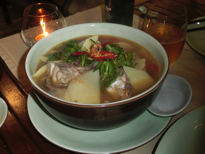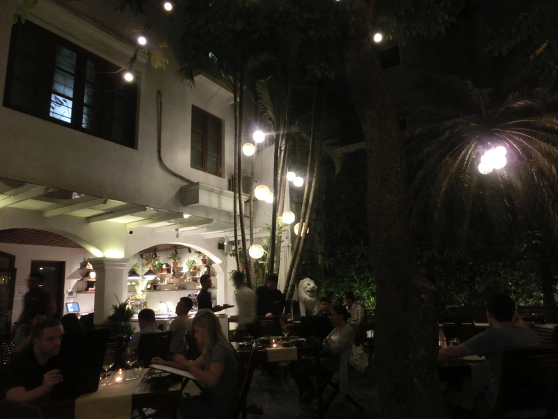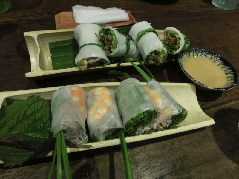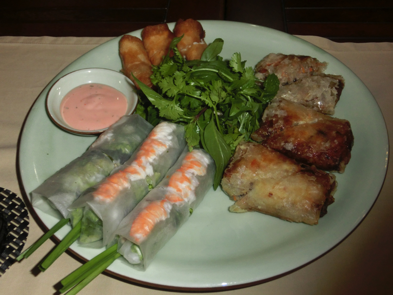 水曜はベトナム人マネージャも含め、5人でHanoi Gardenへ。こちらはしっかりベトナム料理といった感じで、夜空の見える中庭で食べるのが気持ちいい。。生と揚げの春巻きいろいろ、チキンソテー、イカグリルなどそれぞれ付いてくるソースがベトナムらしい感じ。スープは淡水魚っぽく、ちょっとクセはあるがまったく問題なし。少しチリと味わうのもいいね。牛肉炒め物は白ご飯が欲しくなるような日本人好みの味付け。おいしかったです。
