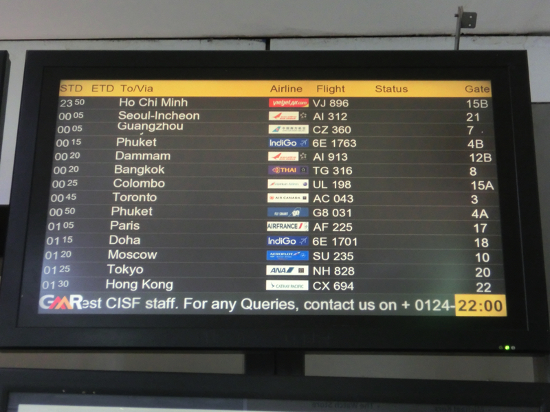 〜ニューデリー出発〜 前の出張のときはチェンナイからだったし、実はニューデリーを国際線で出るのは今回が初めてだ。深夜にもかかわらずいろいろお店は開いているが、もう買うものはないなあ。マスカットで買った会社用チョコと同じものがここにもあったが、マスカットの方が安かったです。買っておいてよかった。まあ、早めにゲート前に行きますか。たくさんの人が香港便を待っているが、出発は少々遅れそうだ。まあ、香港での乗り継ぎ時間が相当あるので何の問題もないけどね。そろそろ搭乗が始まる頃、みんなが待っているシートが並ぶ狭い中にエコノミー用の列を作るという謎の対応。うーん、今回は搭乗時の謎対応をよく見る。結局余計に混乱しているようだが・・・