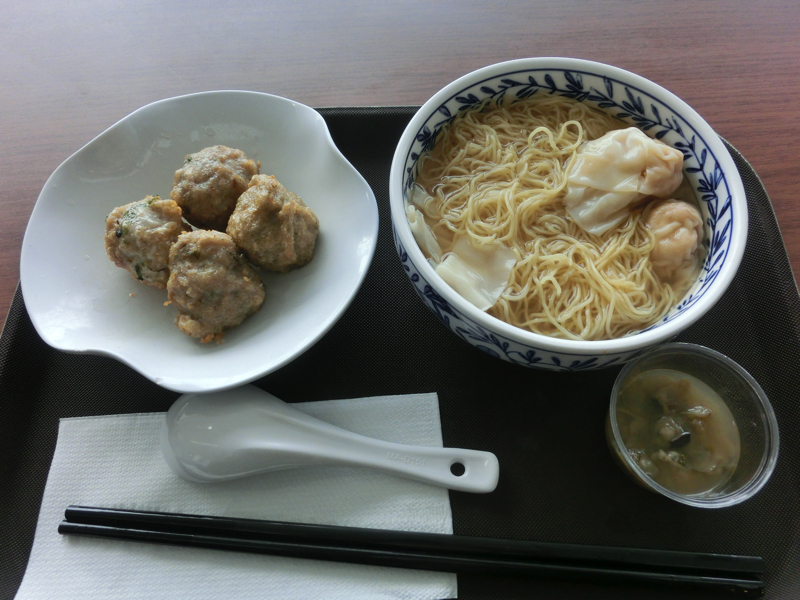 結構はかどったかな。そろそろお腹も空いたし、香港らしく麺でもいただきますか。海老ワンタン麺と揚げ魚肉団子のセットがあったので、それをいただく(98)。揚げたての団子も海老ワンタンもスープも美味しいので、あとは麺だな。こういうものなんだろうけれど、やっぱりこの輪ゴムのような食感は変わらないなあ。 |