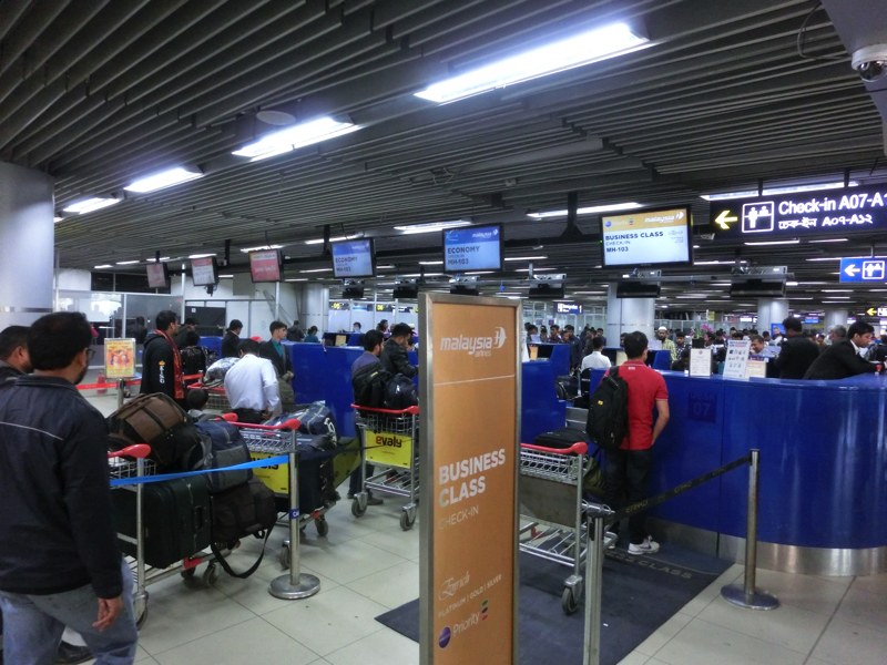 〜空港へ〜 空港までは多少の渋滞があったものの、30分ほどで到着。出発ターミナルの入り口前にもCNGがたむろしているのがカオスだな。早速チェックインにMHのカウンターに
