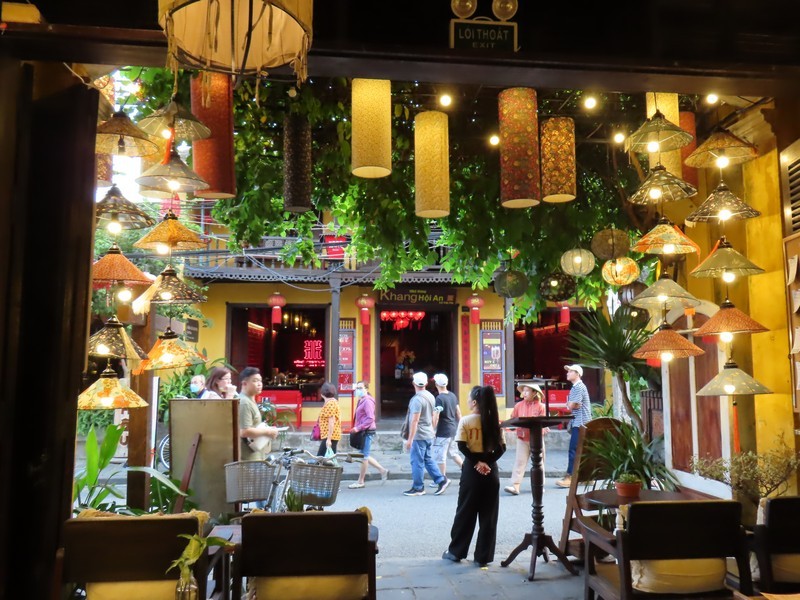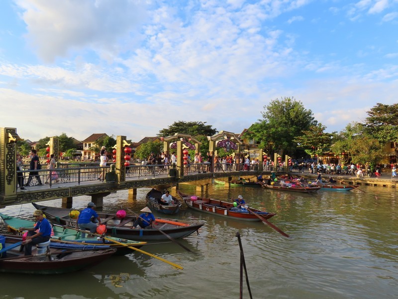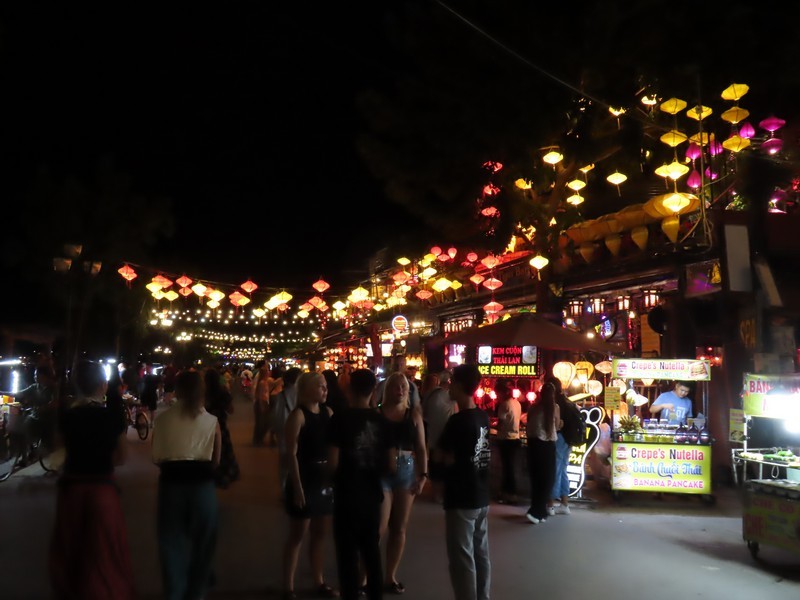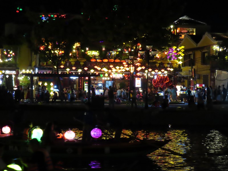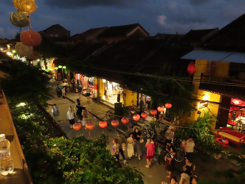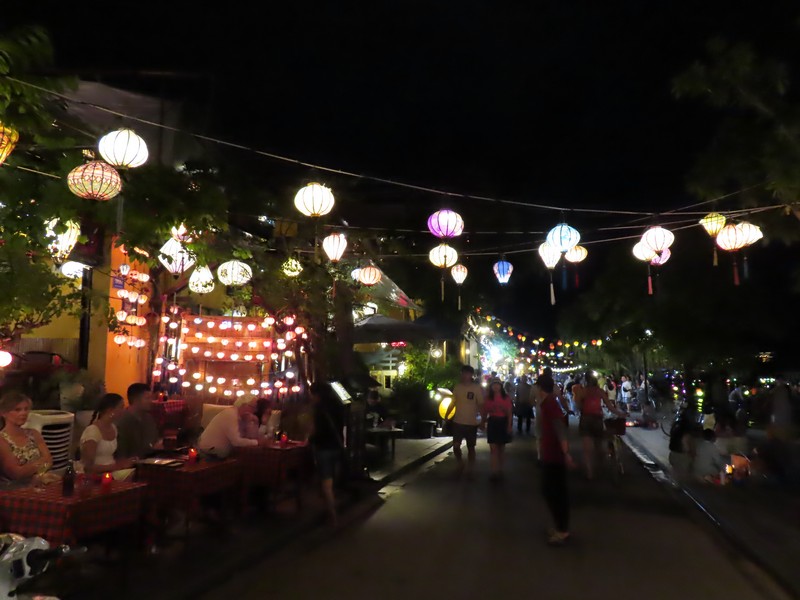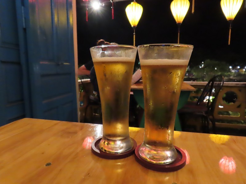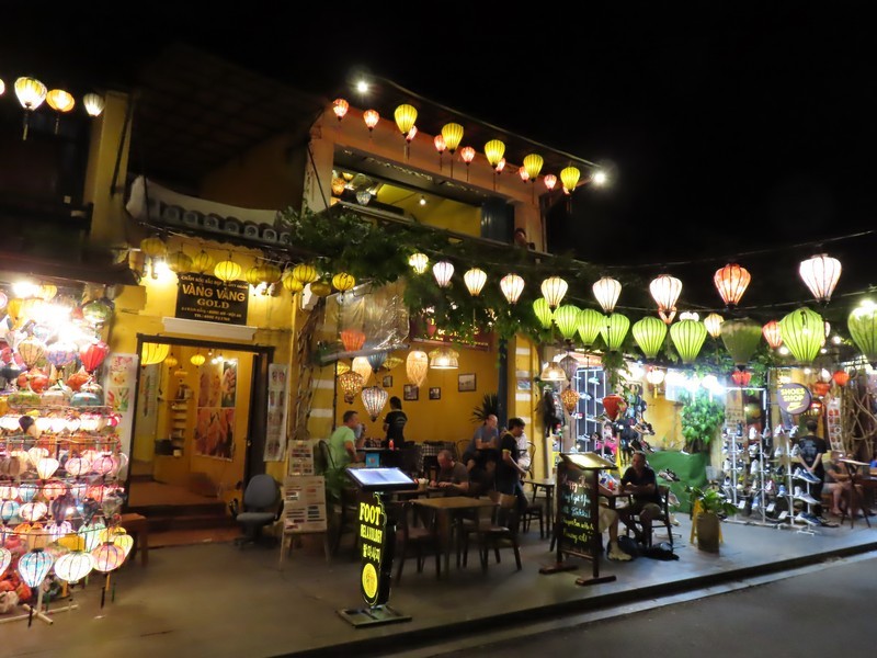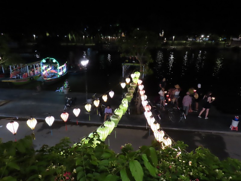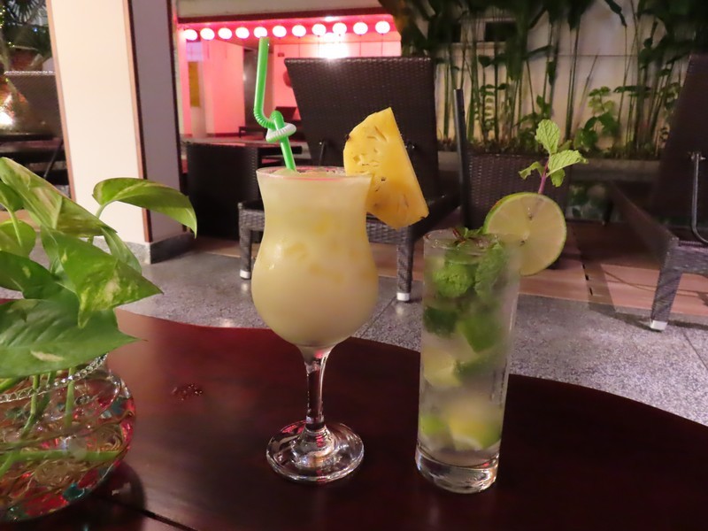 食後に川沿いをぶらぶら。アンホイ橋は相変わらず混みあっているが渡ってみよう。さっき歩いた屋台が並ぶところには、たくさんのランタンが光を放っている。そんな中、店頭に大きなランタンをたくさん飾っているところは写真スポットになっている。せっかくなので写真を撮りましょう。川沿いにあるのがI Love Hoianの派手な電飾、昨日は対岸から見たが今日は目の前で見てみる。入れ替わり人が写真を撮りに来るが、影になるのであまり邪魔にはならないな。いろんな角度から写真を取りましょう。まだ21時前なのでもう少し楽しめるかな、ということでホテルのプールバーへ。先客が一組だけなので静かにのんびりできそうだ。ピニャコラーダとモヒートを頼み、ゆったり楽しむ。この過ごしやすい気候がちょうどいい。ベトナムは今ぐらいの時期が一番旅行しやすいのかもね。