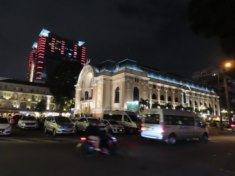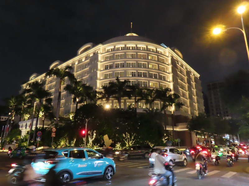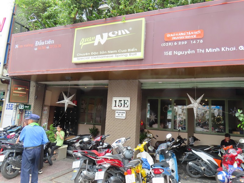 ホーチミンの移動はGRABが便利。アプリで予約すると、すぐ近くに車がいるはず。位置情報を頼りに探していると、ドライバーが写メを送ってきました。その顔と背景を頼りに無事発見。では行きますか。出張で何度か走った覚えのある感じの道を走り、30分ほどで目的のQuan Nem Restaurantに到着。これで111000ドン、770円くらい。安いなあ。お店に入ると結構な混雑、若い人が多い感じ。でもちょうど空いている席があり案内されました。ここで食べるのはブンチャー一択、注文しましょう。しばらくすると大量のよくわからない葉っぱとニョクマムのつけ汁、それと米の麺。まずは軽く麺を味見してみる。うん、さわやかなうまみを感じられます。しばらくすると鉄板で焼かれたお肉が登場。つくねのようなのと、薄切りのバラ肉。これをよくわからない葉っぱや米麺とともにニョクマムつけ汁でいただくのがブンチャー。何度か食べたことはあるが、やっぱりこのお店がおいしいな。ここはあと揚げ春巻きがあり、こぶしくらいの巨大なのだがそれはまあいいか。これで十分満足です。念願のブンチャー、194000ドンで約1400円ほど。ごちそうさまでした。