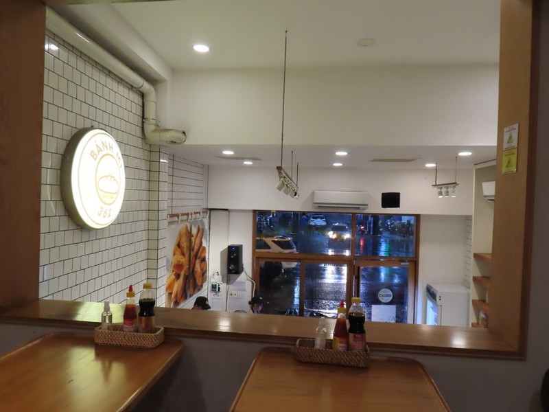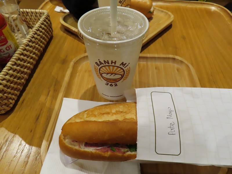 スーパーを出ると、雨がぽつぽつ来ていた。まあ、バインミー屋さんまではあと少し。Banh Mi 362というお店に到着し、パテのとチキンのと、アイスティーとアイスコーヒーを頼む(127000ドン)。ふと外を見ると、なんとものすごい土砂降り。ほんの数分の差で危ないところだったな。まあここまでの雨なので、しばらくすると止むでしょう。しばらくするとバインミーが登場、最後のベトナムごはん。ただ思ったよりもパンが固くてパサパサだった・・・ちょっと残念。まあそれでもパテとかはおいしいし、何より大雨中なのでゆったり過ごしましょう。しばらくすると、どうやら小降りになってきたようだ。そろそろGRABでタクシーをと思ったら、なんとこのタイミングでギガ不足になってつながらなくなってしまった。どうしようかと思ったが、お店のWiFiを借りることができたので助かった。GRABでタクシー手配するとすぐに来てくれました。雨のせいか、空港までは173000と行きより高いがそれでも1200円ほど。やっぱり安いな。