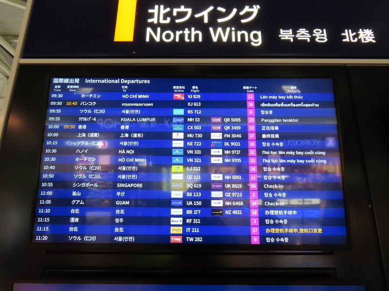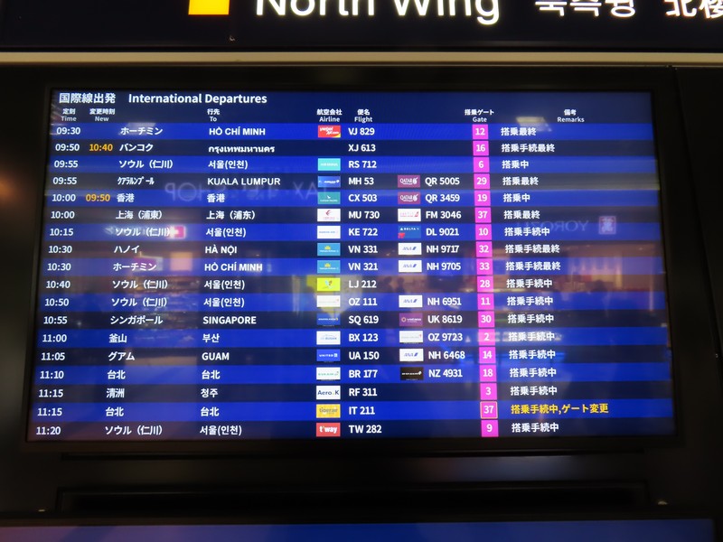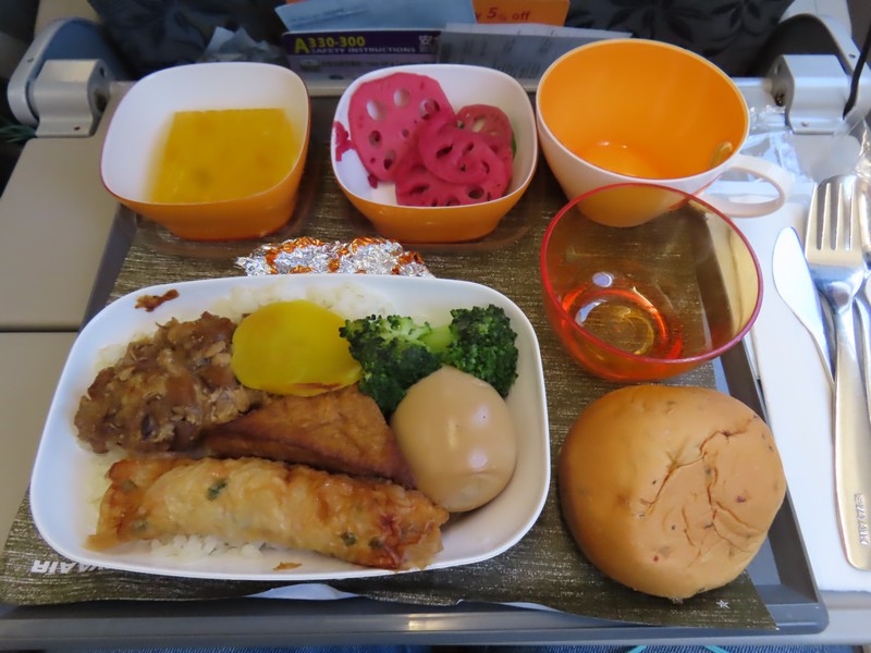 ユニクロでTシャツを買ったら免税価格。ここで買えばお得なんだ。サンドイッチやお弁当をたくさん扱っているお店もあり、これは便利。朝ごはんとして巻きずしといなりずしのセットを買い、軽く腹ごしらえ。出発ゲートに行くと、いましたエバー航空。台湾の航空会社だが、意外とこれまで乗る機会はなかった。楽しみだな。まだ時間はあるので少しうろうろしよう。他のお店やコンビニなど見るが、この辺りはあまり前と変わっていないかな。さて、そろそろ搭乗時間。機内はほぼ満席のようだ。さあ、4年ぶりの離陸、そしてフライトを楽しもう。