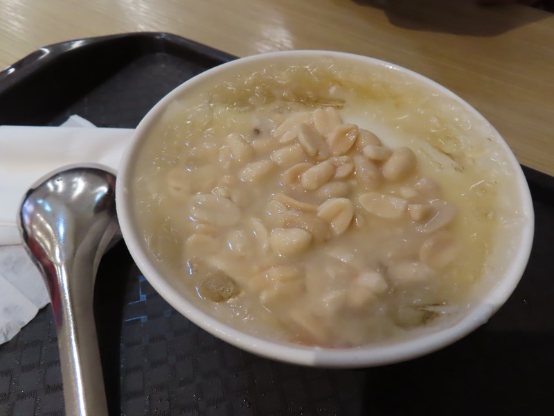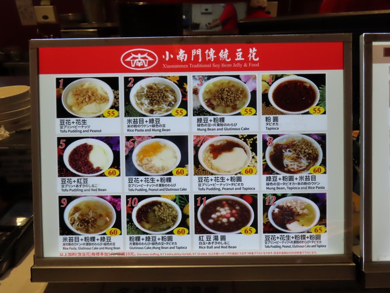今回、スマホの現地利用についてはSoracomというe-Simのサービスを初めて利用した。これが実に便利で、以前使用していたFlexiroamはSIMカードを入れ替える必要があったがSoracomのe-Simは事前設定さえしておけば何も入れ替えることなくそのまま使える。3日間だし、外出中のみでいいので1GBの契約で$5.89。追加が必要ならば都度できるので、これは安くて便利。ということで、飛行機が台北についた瞬間からネットが使える状態になりました。さて、入国審査に荷物受け取りは問題なく完了したが、苦労したのがキャッシング。まず見つけた臺灣銀行のATMでVISAとJCBを試すがエラーになってしまう。他のATMも試した結果、兆豐国際商業銀行でJCBだと2000元のキャッシングができました。これは、今後のためにも覚えておきましょう。空港から市内には高速鉄道があるが、その前に近くのフードコートへ。まずは基本の、ピーナツ入りの豆花をいただきましょう(55)。さっぱりした甘味に豆腐のつるっとしたのど越し、柔らかいピーナツの食感とこれぞ台湾。本場で基本を味わうのがいいですね。