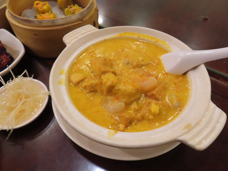 小籠包用のショウガなどをスタンバイしたとこで、その小籠包が登場。アツアツの小籠包、中のスープをまず味わう。うん、お肉のうまみがしっかりとしてとてもおいしいです。そしてこれにショウガと醤油ダレを合わせる。そりゃうまいよね。続いてきたのが蝦餃子、そして蟹焼売。蝦餃子は蝦のぷりぷり感が実にいいし、蟹焼売は蟹の身にカニ味噌の風味と蟹卵の食感が合わさりとてもおいしい。やっぱり台湾と言えばこういうのがいいなあ。ここで来たのが蟹豆腐。あまりこういうものは頼んだことがなかったが、カニと豆腐が優しい味わいの濃いスープで煮込まれており、これもまた美味。アツアツのうちにいただくのがまたいいです。そして定番の空心菜炒め。やっぱりこれは外せないですね。いろいろ食べたが、やっぱり締めには甘いものを。カスタードまんがちょうどいいな。これで満足、ごちそうさまでした(1120)。