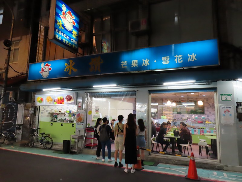 来た道を戻り、賑やかな雙連駅エリアを歩く。いい感じのお店がいろいろ「あって、気になるなあ。お腹はもういっぱいなので、次の目的はデザート、台湾と言えばのマンゴーかき氷。雙連駅を超えてしばらく歩くと、冰讚というお店に到着。たまたま待たずに入れたが、すぐに行列ができていました。いろいろあるが、ここは芒果雪花冰。ミルク味のかき氷に、たっぷりのマンゴー。これは・・・うまい。ミルク入りでちょっとねっとりしたかき氷に、甘く濃厚な完熟マンゴー。これは台湾に来ないと食べられない絶品だ。今は180元なのだが、数年前の情報では80元。値段が倍以上になり、円安のせいで実感としては3倍近くになっているのだがこのご時世仕方がない。そんなことを嘆くより、この味わいを楽しめることを幸せと思わねば。