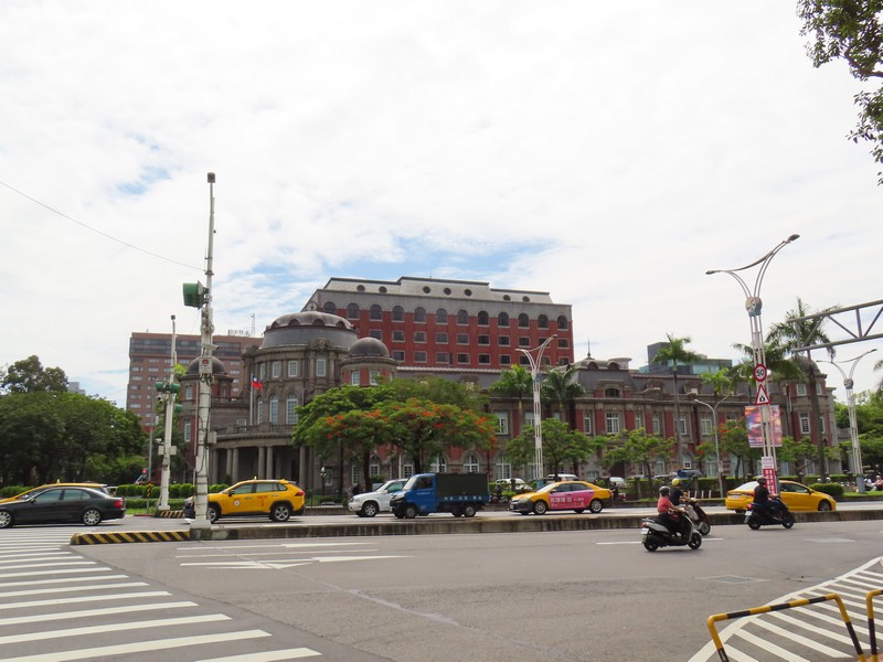 しっかり眠れたかな。シャワーを浴びてさっぱりし、9時半ごろにホテルを出る。夏の暑さが一段落した感じの、さわやかな気候だ。まずは朝ごはんを食べたいので、華山市場へと向かおう。最寄りの善導寺駅は台北駅の次なので、散歩がてら行きましょう。広い道で歩きやすいしね。しばらく歩くと歴史ありそうな建物が。現在は監察院と役割だが、この建物は日本統治時代に建設されたものらしい。レンガ造りがどことなく東京駅のような雰囲気でもある。