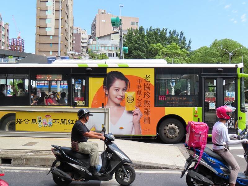 ではお茶を買いに行きましょう。昔に行ったことのある「意翔村茶葉」へと向かう。歩いてざっと25分くらいかな。道は分かりやすいので散歩がてら行きましょう。大通りをバスが走っているが、その車体にビビアンスーの広告を発見。台湾の大スターだよね。そんな景色を楽しみながら歩き、意翔村茶葉に到着したが・・本日休業。そうなの、残念。開いているものと思ってきたが、よく見ると土日休業。先に調べないとねえ・・