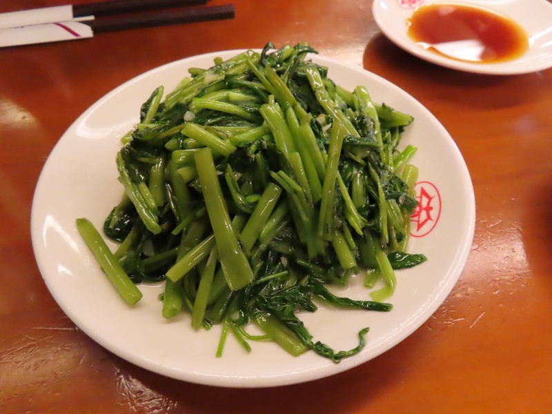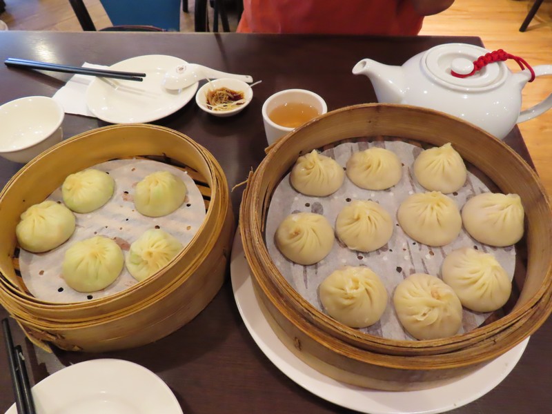 大ホールに面した2階がレストランエリア。フードコートがあるし、たくさんのお店が並んでいる。ぐるっと見て回ってみるが、やっぱりここは點心かな。その名の通りの「點心世界」というお店に入る。もう食べ収めだしね。定番の空心菜の炒め物をいただき、普通の小籠包は昼も食べたのでここはカニの味噌と卵入りのしよう。カニの複雑なうまみが広がっておいしい。ショウガもたっぷりいただきましょう。そしてたまには焼き餃子も食べたいということで、鍋貼餃子をいただく。思ったよりも大きく食べ応えのある餃子でした。このくらいでちょうどいいかな。ごちそうさまでした(430)。