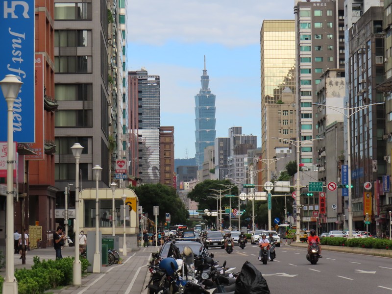 もう少し、お土産探しがしたい。再び信義路まで行くと家楽福超市というスーパーがあるようなので行ってみる。途中、ちょうど夕日に輝く101がとてもきれいだ。信義路を歩いていると、なんとさっきQQを食べた東區粉圓の支店がありました。きれいなお店だが、やっぱり本店の方が雰囲気があるかなあ。スーパーはちょっとわかりづらかったが、地下にありました。お菓子などいろいろあるが、お土産によさそうなものはなかなか見つけられないですねえ。このあとは三越とか、台北駅近辺に行ってみよう。ということで信義安和から地下鉄に乗り、台北駅まで。ホテルに戻り、ちょっと休憩。