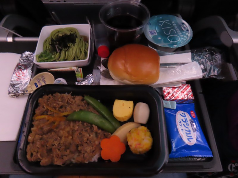 やっぱりまずは「翔んで埼玉」かな。関西いじりもばかばかしいが単純に面白いです。映画を見始めた頃に飛行機は離陸、シンガポールに向けて出発だ。しばらくしてドリンクサービス。ここはやはり、タイガービールとナッツで空の旅に乾杯。午前中のフライトでのビールは実にうまい。その後しばらくして、機内食が開始。牛丼かシーフードパスタかの選択で、ここは牛丼で。和のおかずに生姜のきいた牛肉、なかなかおいしい。これにおそば、パン、クラッカーと炭水化物祭りだが、そばつゆもバターもチーズも赤ワインに合わせるにはちょうどいい。食後にコーヒーをいただき、そういえば甘いものがないなと思っていたらここでハーゲンダッツ登場。これはいい。安定のハーゲンダッツだし、コーヒーがあるのでアフォガード風にしてみても楽しめる。ごちそうさまでした。 食後は映画の続きを見たり、音楽聞きながらうとうとしたりとのんびり過ごす。