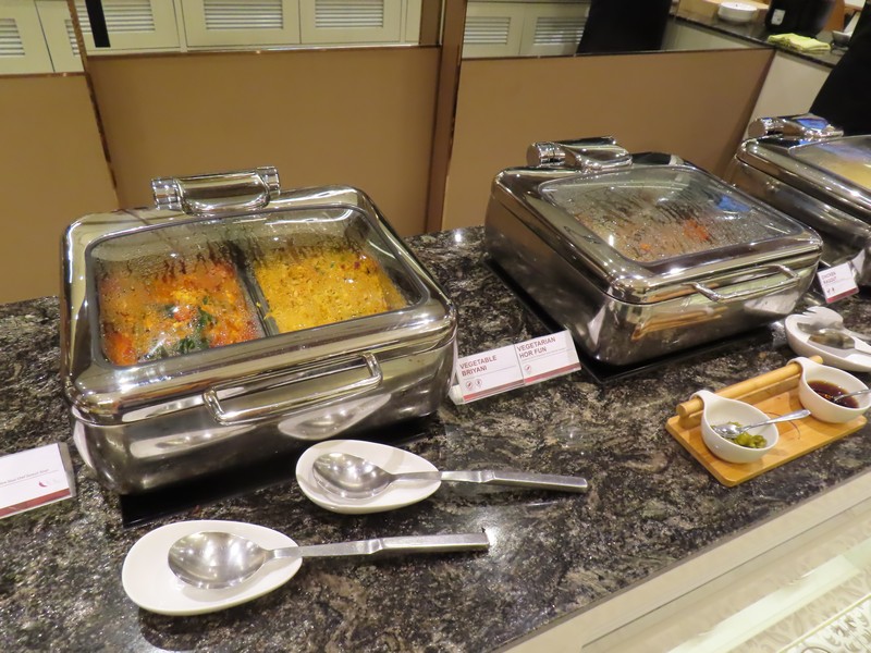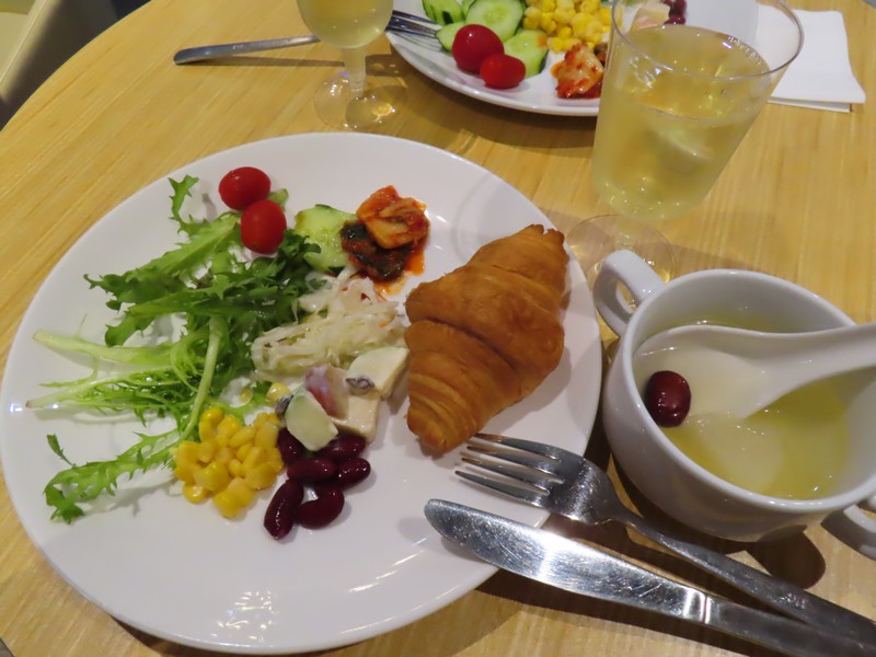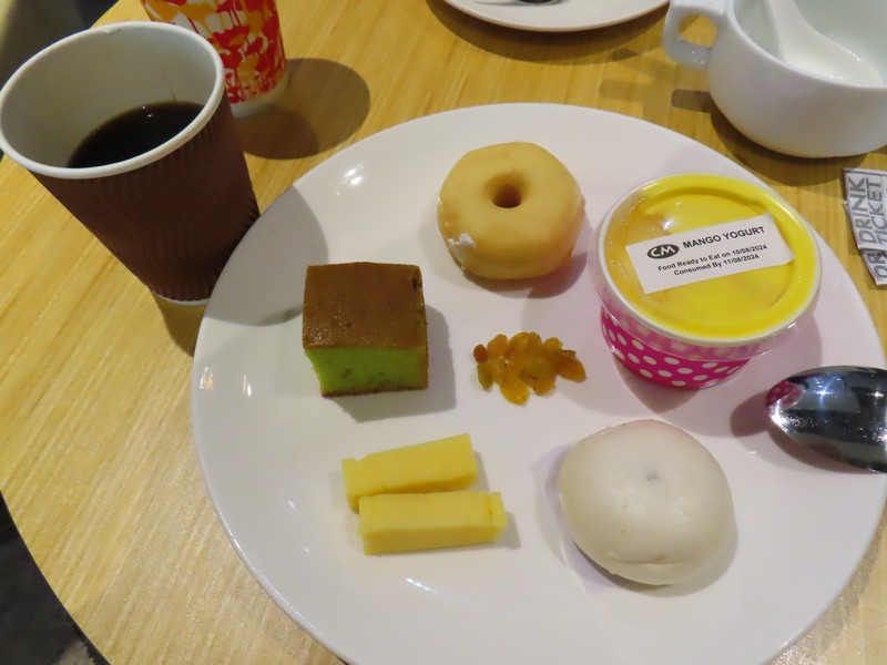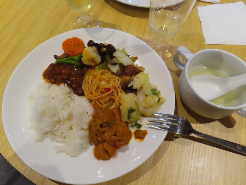 受付でカードと搭乗券、パスポートを提示。このカードで海外空港のラウンジを年間10回利用できるのだ。まあ、年会費無料の今年限りのお楽しみだけどね。中にはソファー席やテーブル席などあり、そんなに広いわけではないがゆったりしている。席もそれなりに埋まっているな。そしてここにはちゃんとしたビュッフェ形式のお食事がありました。これはいい。そんなにお腹がすいてはいないが食べてしまうよね。お酒のクーポンもいただいたので白ワインをいただき、まずは野菜中心の一皿をいただきましょう。機内食の後だと生野菜系を食べたくなります。白ワインとともに、おいしいです。続いては温かい料理、インド系や中華系かな。ビリヤニやチキン、白身魚などいろいろいただきます。最後はドーナツやヨーグルト、チーズなどとコーヒーでちょうどいい感じ。3時間までいられるので、ゆっくりさせていただきました。ごちそうさました。
