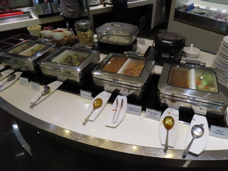 さて、次のラウンジへ。関空のJALと同じく、ここはシンガポール航空のラウンジが最も広そうだがそこには入れないので、カードで入れるSATAラウンジへ。ここはボックス席のように仕切られたテーブル席が並んでいて、ゆったりできそうだ。そしてここにもあるのがビュッフェ、おなかはすいていないがやっぱり食べてみないと。サラダにはクスクスのようなものがあり、温かい料理にはフィッシュカレーなどマレー系もある。せっかくなので少しずついただきましょう。結構辛いものもあったが、どれもおいしいです。さすがにお酒はもういいしデザート系はいらないので、さっぱりとデトックスウォーターですっきりしましょう。ゆっくりしたな。搭乗開始時間があと30分くらいになったので、そろそろ行きますか。もう一つ、Marhabaというラウンジもあったがまた機会があればね。きっと同じようにゆったりできるんだろうな。でもチャンギはさっきのラウンジから見下ろすフロアにもゆったりとしたスペースにテーブルやベンチがあり、ラウンジでなくてもゆったりできるところは多くある。いいですね。