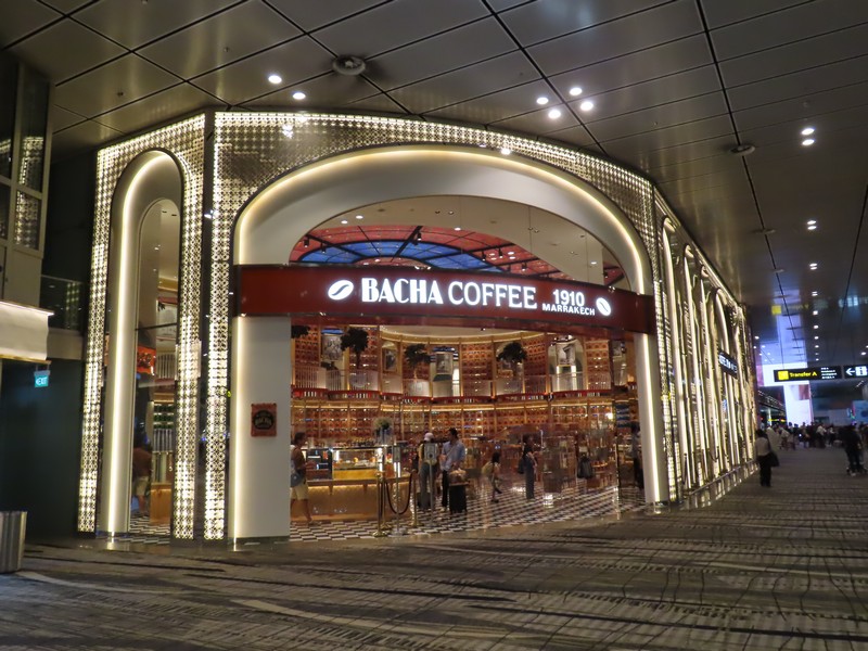 まあ、買うものはないがたくさんのきれいなお店をぶらぶらと見るのはいいですね。ルイヴィトンのお店は前面全体がLEDで海を表していてとてもきれい。ニモやカメもオブジェもの楽しげだ。奥に行くとモロッコのコーヒー屋さんがなんともきらびやかな感じで、もしモロッコに行く機会があればこんなのも買いたいよね。