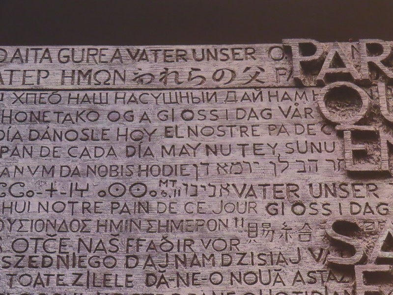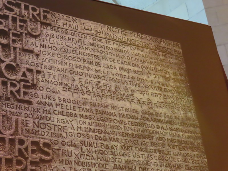 主祭壇から見た正面に、大きな扉がある。ここが完成時には正門になるのだが、よく見ると様々な言語で文字が書かれている。おそらく聖書の一文と思われるが、アルファベットの言語以外にも日本語や中国語らしい漢字、アラビアやギリシャなどの文字も並んでいる。この正門はいずれ「栄光のファサード」として最も壮麗なファサードになるらしいので、完成が楽しみです。2030年くらいに来れたらいいな。