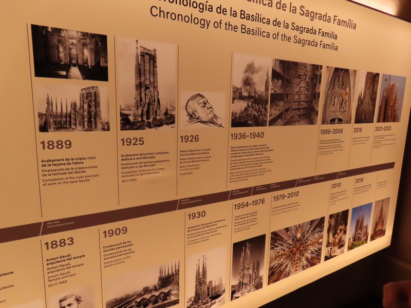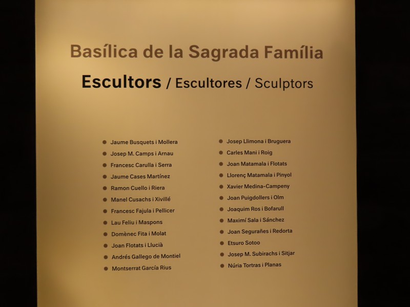 一通り見たかな。塔はもう仕方がないので、行きますか。地下には様々な展示があり、サグラダファミリアの歴史や完成予想図、バルセロナの歴史など古い写真とともに説明がある。途中、工房もありました。3Dプリンタが見えるが、これで随分作業効率は上がったらしい。出口近くには彫刻家の名前が記されており、その中には日本人・外尾悦郎氏の名がありました。バルセロナで最も有名な観光地、サグラダファミリアがこれにて終了。そういえば、今回で6回目でした。1988・1996・1999・2004・2014に続く2024なので、次は遅くとも2034年までに。