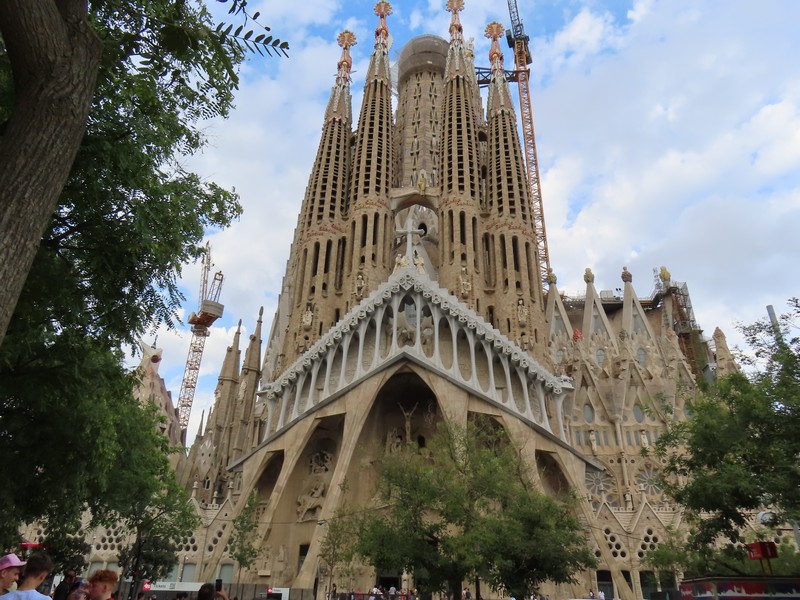 さて、最後にここを出る前に、インフォメーションで忘れ物のキャップの件を問い合わせ。残念ながら現時点では届いていないが、連絡先のメアドとキャップの特徴を伝える。たまたまグエル公園で撮った写真に写っていたので、色やデザインを詳しく伝えることができた。見つかればいいな。では最後に、サグラダファミリア前の公園へ。ここでは池越しに全体像をとらえることができる。やっぱりこの写真は撮っておかないと。これは生誕側なので、受難側にも行ってみる。こちらには池はないが公園はあるので、同じように全体像を撮ることはできる。栄光のファサード側はまだ工事中だが、これはどうなっていくんだろうな。いずれにしても、2年後の完成がたのしみです。
