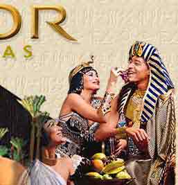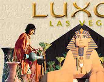 ピラミッドの中は古代遺跡の宝庫。神殿、ファラオや神々の像など、非常に精巧なレプリカ。神殿の奥にはカジノが拡がる