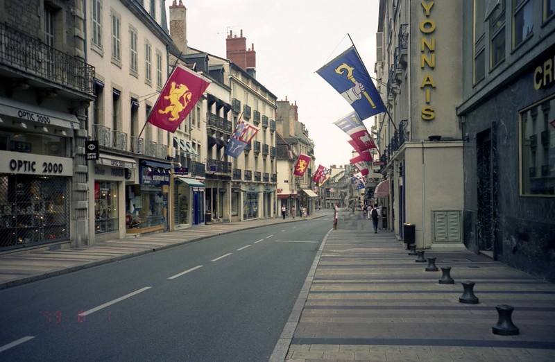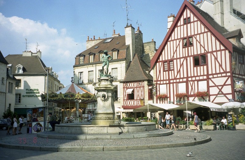 この夜行はパリ発なので、予約をしておかないと席が取れないかもしれない。クシェットがとれるといいな・・・無事取れました。1等は満席だったけれど、2等が取れました(176F)。これで一安心だ。続いてはワインツアーの申し込み。インフォメーションで聞いてみると、わずか8人のミニバスツアーだそうで、明日の14時からはもう満席だが朝9時からの分ならばとれるという。朝9時からワイン・・・とも思ったがせっかくだし行きましょう。2人分620フランを払い、インフォメーションを出た。ディジョンの中心街に向かって歩く。でも今日は日曜日なので、お店がほとんどあいていない。