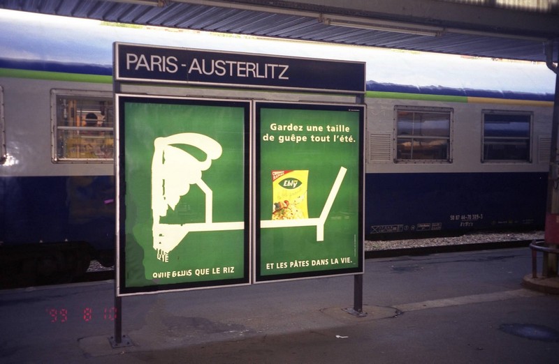 寒い。列車の中は冷房が効いており、あまりに寒くて何度も目がさめる。周りを見ると、みんな長袖を着たりして暖かい格好をしている。ところがこちらはTシャツしか持っていない。仕方が無い。冷たくなった足や腕をこすりながら、なんとか眠ろうとするが、すぐに目がさめてしまう。うう、つらい・・・それでもなんとかうとうとしていると、列車は7時44分、パリはオステリッツ駅に到着した。列車を降りるとやはり寒い。昨日までとは大違いだ。