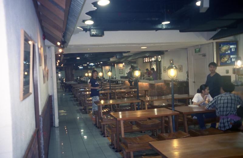 13:30に会社を早退。4/29発だとマイレージの特典旅行がゲットできないため、かなりムリを押してのスケジュールだ。家に帰り速攻で着替え、14:05分頃出発。難波には14:26分に着いた。時間がない。ダッシュで南海難波駅まで行き、なんとか14:30のラピートに飛び乗ることが出来た。よかった。15:10頃関空着、すかさずチェックイン。今日は昼を食べる時間が無かったのでまずはカレーで腹ごしらえ。その後両替をしたり(TC\100,000、$200で\125,560)、カメラ電池や水など買い出しをしたりしているとアッという間に搭乗時刻の16:10になった。急いで出国手続きを済ませ、頼まれていた口紅を買い、シャトルで8番ゲートへ。もう既に出発の最終案内が流れている。いそげーっ。ふーっ、なんとか間に合った。16:40発のNH111便は3-3-3の配列で真ん中の列だ。荷物をあげ、席に着くとすぐに飛行機は動き出した。いつものようになぜか飛行機に乗ると眠くなってしまう。アッという間に眠りに落ち、またもや離陸に気づかなかった・・・離陸後すぐに目が覚めた。機内を見渡してみると、ちらほらと空席があるようだ。シートの前には個人用のビデオがある。説明書をみると、どうやらゲームが10種類以上あるようだ。ようし、これで退屈しないぞ。昨年のシンガポール航空以来、丸一年ぶりにスーパーマリオをする。久々でうまくいかない。これはまたはまってしまいそうだ。ゲームを始めるとすぐにドリンクサービスが始まった。まずはビールでしょう!おつまみを食べながらビール飲んで、ゲームしてご機嫌さ!続いてごはん。鳥唐揚げの甘酢風味とシーフードカレー風味があった。それぞれ選び、ワインは白。アッという間に平らげてしまった。そして食後はゲーム。麻雀ゲームがあるのでこれはいい。でもコテンパに負けてしまった・・・上海もある。ゲームは全部で12種類もあった。これならヨーロッパまで行っても退屈しないな。ゲームしたり、一眠りしたりしているとアッという間にシンガポールが近づいてきた。定刻より15分ほど早く、21:50にチャンギ国際空港に到着した。きれいな空港だ。両替を済ませ(\10000→$136)、タクシーでホテルへ($14.4)。マンションが林立する中を快調に走る。20分くらいでホテルに到着。初日は到着が遅いと言うことで、HolidayInnParkViewを予約していた。立派なホテルだ。これで$140は安い。22:30頃、ベットに飛び込む。あー気持ちいい。が、こうしてはいられない。タクシーから見えたのだが、ホテルのすぐ近くに屋台街があったようだ。ホテルを出、暫く迷ったがめざす屋台街を発見。メリディアンホテルの下にあり、かなり規模が大きい。地元の学生らしいグループもいるので問題はないだろう。ざっと一回りするが、目移りしてしまう。あちらこちらからフライパンの湯気、立ちこめる香り、あーアジアだ。魚団子のスープ($3)と牡蠣の卵炒め(蠣煎$4)を頼んだ。