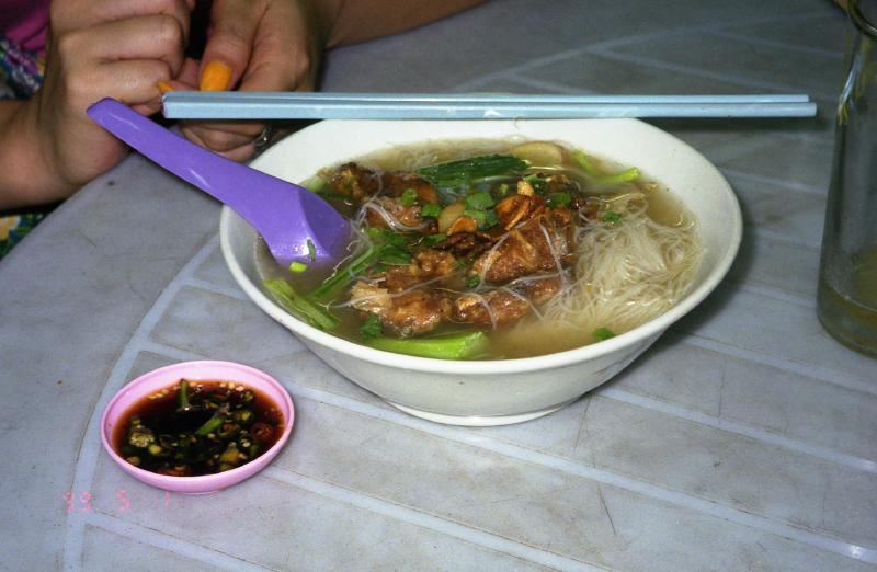 といっても帰るわけではなく、ホテルそばの屋台街へ。ここは中華系が中心で、またもおいしそうなものがたくさんある。ここではエビのエキスがたっぷり入った汁麺をたのみ(RM4)、食後にミルクティーを飲んだ(RM0.90)。辛い麺のあとの甘いミルクティーがよくあう。あーおいしかった。とてもとても満足です。