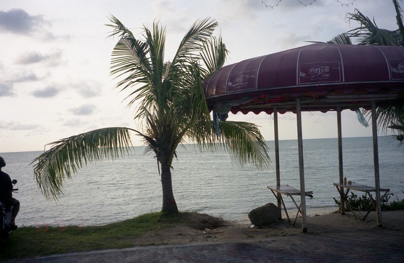 仕方がない、ビーチは延々と続いているのでホテルの敷地外に出る。これで文句はなかろう。砂浜に腰をおろし、のんびり過ごした。海にも入った。なんだかぬるい海だ。しかも砂浜なので、透明度はほとんどない。去年行った沖縄の島の海は魚がたくさん見えてすばらしかったが、ここではそれは望めないようだ。でも汚いわけではないし、海は気持ちがいい。ゆっくりと時間は流れていく。夕方になり、そろそろ街に戻りましょうか。バス停までの道のりにいくつか屋台があり、準備を始めているようだ。でもこのあたりはリゾート地だけあって街中に比べると少し高めのようだ。しばらくするとバスが来た。