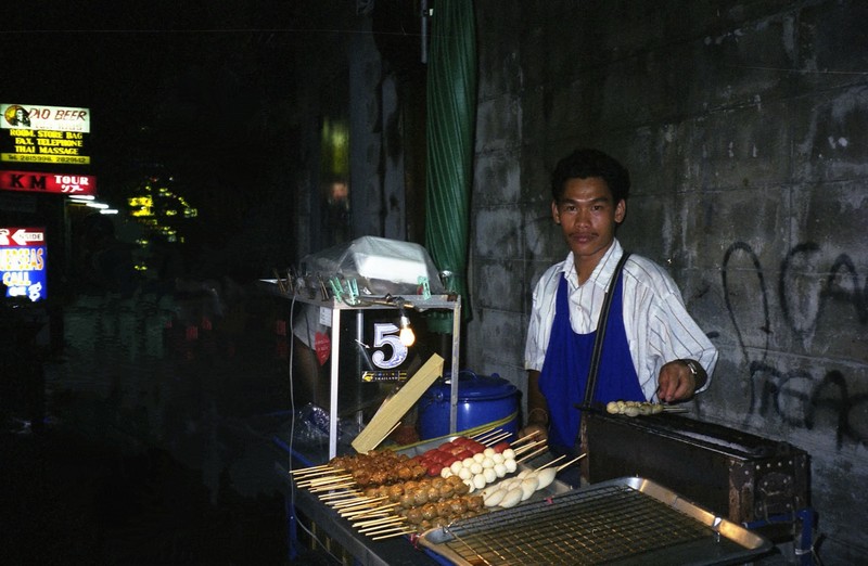 途中何度かの休憩をはさみながら、バスは快調に走る。8:30頃、バンコク南バスターミナルに到着した。14時間の長旅、お疲れさまでした。南バスターミナルは中心街から少し離れているので、カオサンまではタクシーで。最初80Bと言われたが、60Bに値切る。この値段がはたして安いのかどうかはわからないが・・・10分ほどでカオサン到着。10年ぶりのカオサンだ。