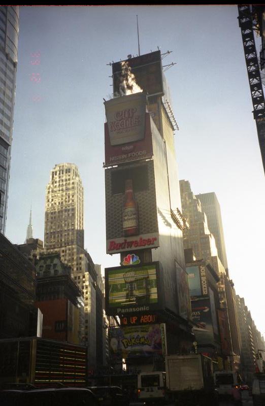 チェックアウトは12時なので、のんびりと食休みをし、さあ、次のホテルへ行きましょう。少し重いがスーツケースを転がしながら、西46丁目にあるホテルに向かう。15分ほどでQuality HOTELに到着。WOLCOTよりは少し高いだけあって、部屋がかなり良くなった。それにしてもニューヨークはホテルが高い。ヨーロッパならば半額くらいで泊まれるだろう。さて、今日は市内うろつき&美女と野獣の日だ。初めて見る本場のミュージカルも楽しみだが、本当は「ライオンキング」が見たかったのだ。出発前に日本から予約しようと思ったが、もう満席で取れなかった。日本では日本語バージョンを見たので、是非こちらでは英語バージョンが見たい。ひょっとしたら当日のキャンセルがあるかもしれないと思い、地下鉄に乗ってニュー・アムステルダム劇場へと向かう。劇場の前に来ると・・・もう並んでいる人がいる。20人くらいだろうか、既にキャンセル待ちの列ができている。