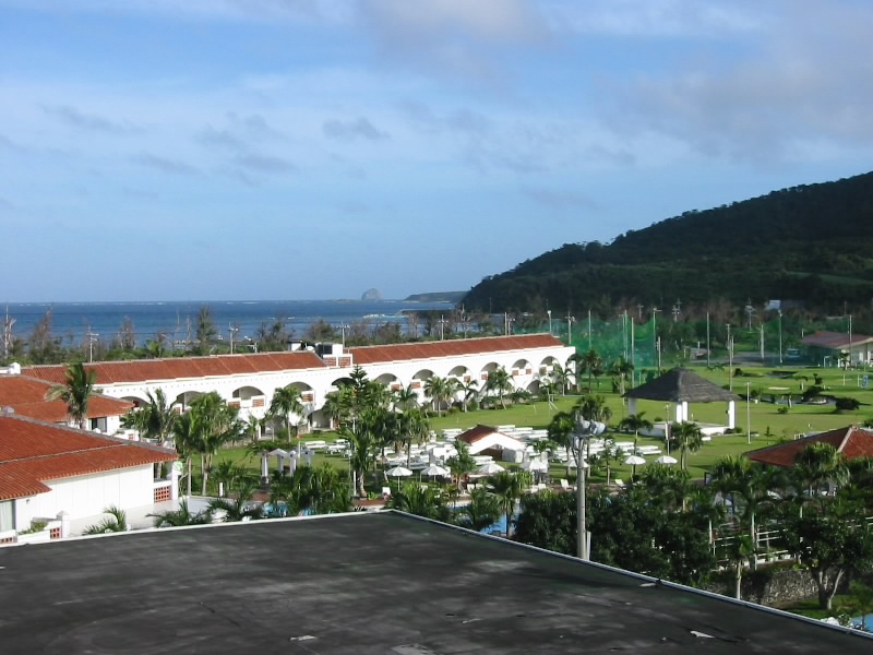 荷物を受け取り、町営バスに乗る。ここからホテルまでは20分ほど。途中、地元のおばあちゃんが乗り降りしたが、ほとんどの乗客の目的地は同じ、日航久米島アイランドだ。ホテルに到着し、早速チェックイン。部屋をアップグレードしていたので、少し広めの部屋だ。ここからはホテルの敷地のみならず、海や周りの畑を一望することが出来る。