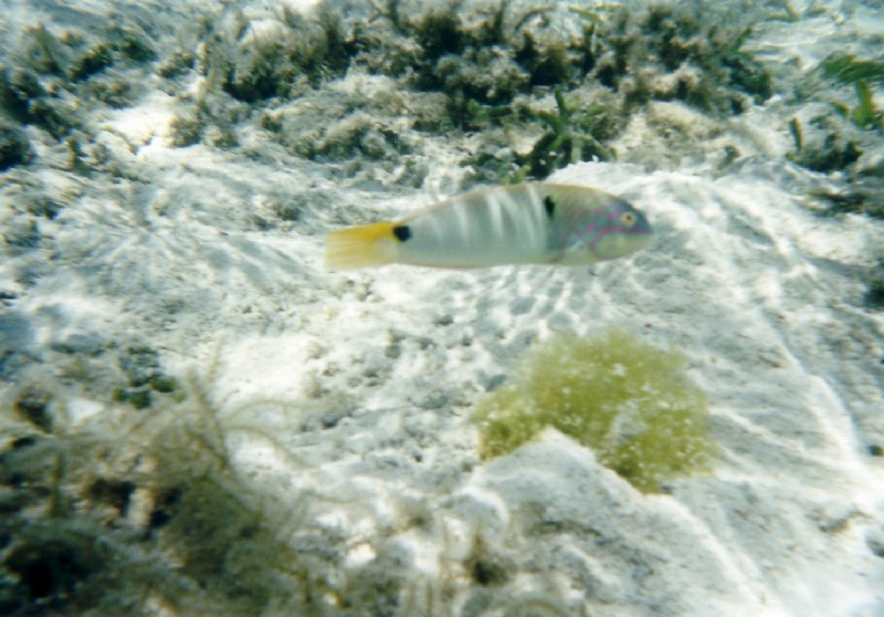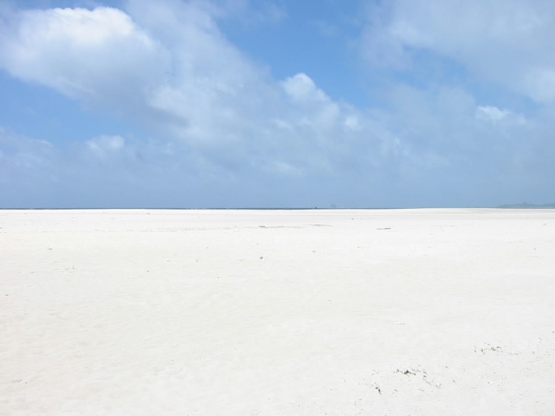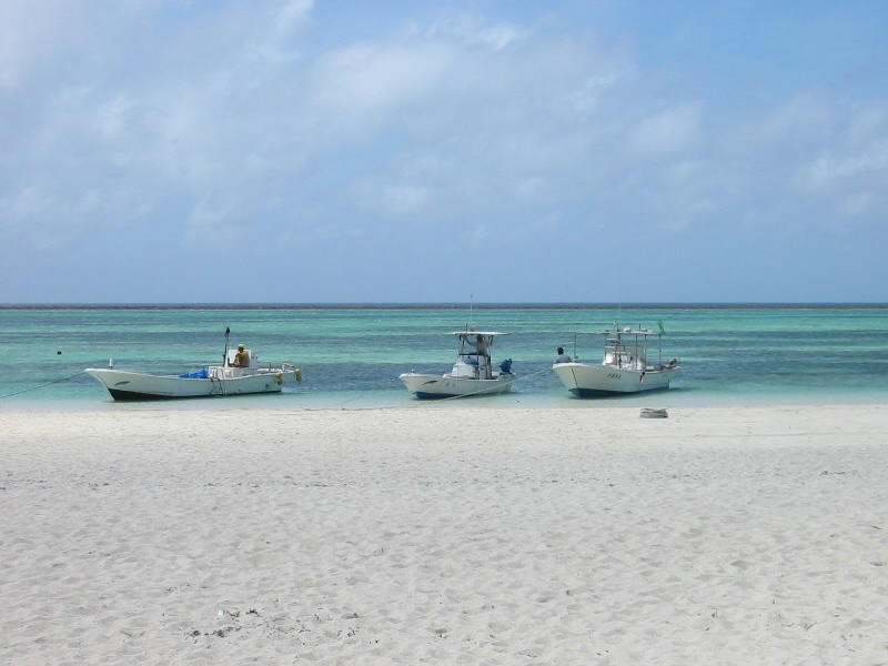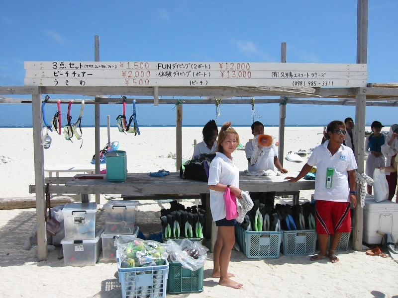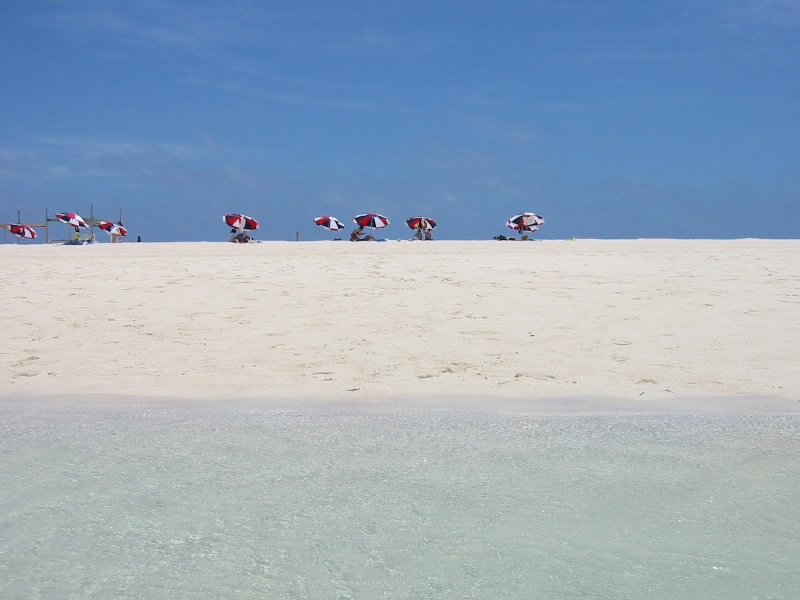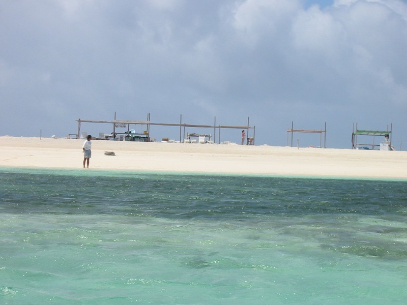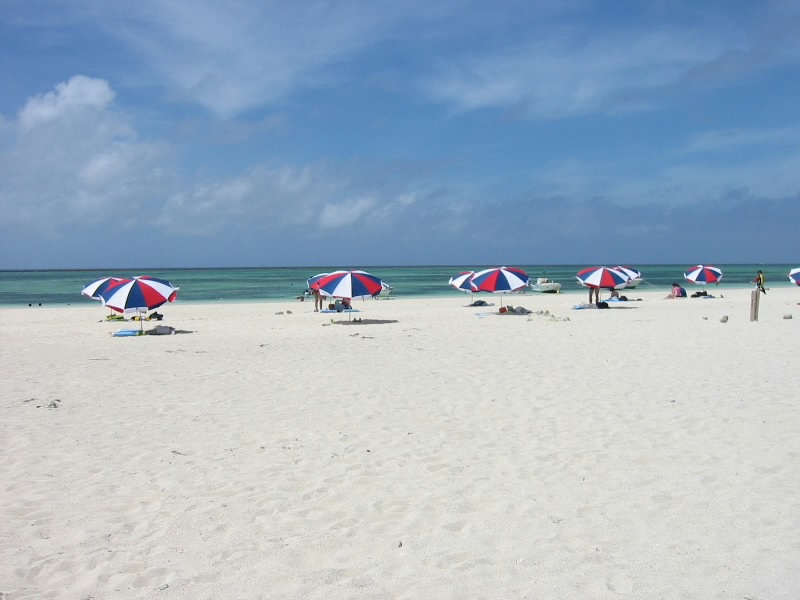 到着してまずはビーチにある簡単な小屋の前に集合。遊泳の範囲とか、売店の説明を受け、解散。強烈な日差しをさえぎるものが何もないところなので、とにかくまずは一番乗りでパラソルをゲット。ビーチマットを敷き、準備完了だ。そして日焼け止め。たっぷり塗らないとね。さあて、では海に入りますか。波打ち際まで、白い砂が広がっている。素足に砂の感触が心地いい。この後しばらく、海と戯れる。波打ち際にも小魚や小さなエビがいるぞ。