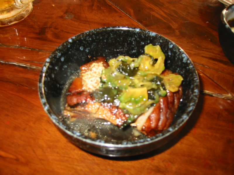 さて、では泡盛へと行きますが。今日は同じ久米仙でも、古酒にしましょう。といっても5年ものだが、やはり昨日のものよりはずっとまろやかな、深みのある感じがする。その日の気分にもよると思うが、今日はこっちが気分かな。そういえば、野球はどうなっているのだろうか。iモードチェックだ。今日から巨人は中日、阪神はお得意様の横浜だ。阪神はまたも先制、巨人も先制しているがちょっとピンチだ。今年はこのまま阪神がぶっちぎるのだろうか・・・つまみがなくなってきたぞ。ということで、刺身の盛り合わせ。いろんな種類の刺身がのっている。どれも新鮮で、歯ごたえがしっかりしている。おいしいね。ゆっくりとお酒を飲み、ゆっくりと刺身を食べる。もずくも追加で注文。これで一体何時間粘っただろうか、気が付くと野球も終わり、阪神は対横浜14連勝、巨人は中日に逆転負け。実に珍しい年だ。