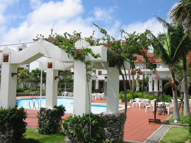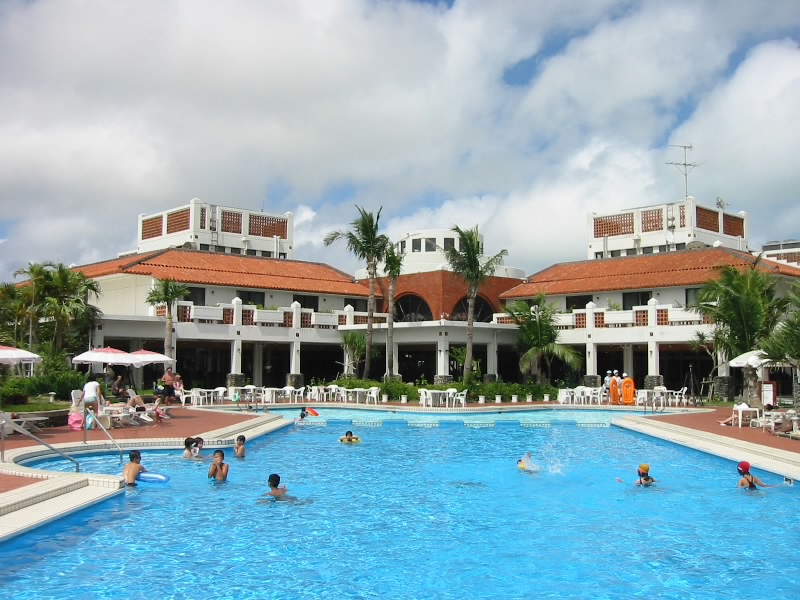 しかしこれではどうしようもない。泳げもしないビーチで寝そべっているのもいまひとつ気分が乗らないし、ここはホテルのプールへと行きますか。ということでホテルに戻り、プールサイドのデッキチェアをゲット。ここでのんびりすごしましょう。その後は日差しをパラソルで避けながら、本を読んだりプールで泳いだり、ホテル敷地内を散歩したりとゆったりすごす。敷地内には芝生が広がっており、天気もよく、静かで気持ちいいな。まさにリゾートというところか。ただし、プールサイドで食べたカレーはかなりまずかったが・・・のんびりしているうちに夕方になった。そろそろ部屋に戻りましょうか。