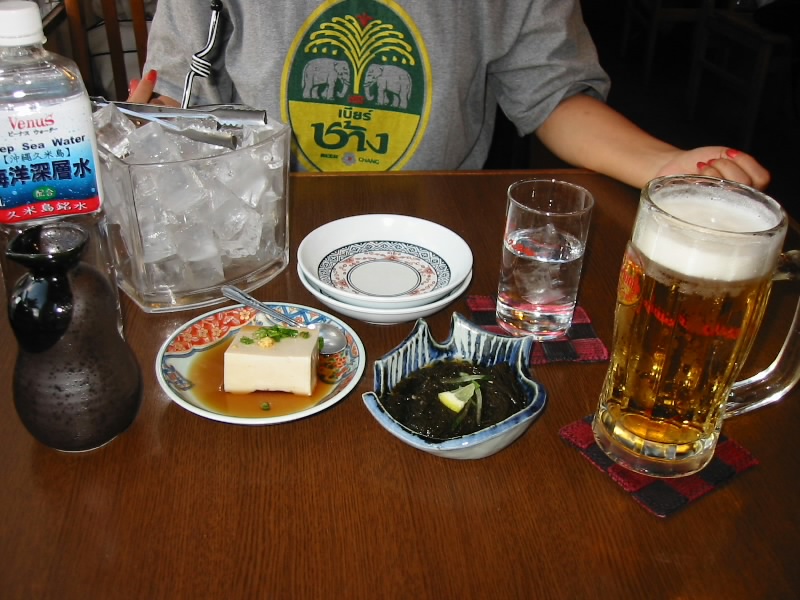 久米島最後の晩ごはんは、初日と同じ「亀吉」。時間が早いので、今日は並ばずに入れた。とにかくビールと泡盛で乾杯だ。そしてまずはもずくとジーマミー豆腐。もずくはにんにく醤油入りにする。うまいね。ジーマミー豆腐はピーナッツで出来ている。沖縄でこれまでにも何度か食べているが、今回のが一番ピーナッツを感じる。しっかりとした食感で、なかなかの味。次はラフテー。ここのは久米島みそが入っているらしく、少し甘みがある。昨日のラフテーとは随分と違うが、これもまた良し。続いて海ぶどう。味というよりも、プチプチとした独特の食感を楽しむ。酢に浸っているので早く食べないとしぼんでしまうぞ。そしてフーチャンプル。麩を使ったチャンプルなのだが、この麩がまたモチモチしていてうまいのだ。メインにはもずくのかき揚げ。玉ネギやにんじん、エビなどにもずくをたっぷりとプラスし、かき揚げにしている。これがまたボリュームがあって、野菜の甘みがあって、エビの風味にもずく・・・おいしいぜ。ビールも進むし泡盛も進む。泡盛をおかわりし、もずくとゴーヤの梅和えを追加。これでゆったりと過ごす。さてさて、例によって阪神は・・・対横浜、15連勝。どこまで続くのだろうか。そして巨人・・・中日に完封負け。完全に独走だな。そろそろマジックも点くのではないだろうか。いつの間にやら空席が目立つようになっている。