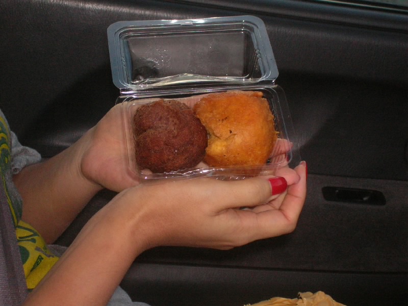 海から上がると、少しいた人も帰り支度を始めているようだ。もう少し海と戯れ、われわれも撤収しましょうか。車に戻り、岬の売店で買ったサーターアンダーギで栄養補給。少し疲れた体と塩辛い海水のあとでこの甘さはいいね。さて、いろいろ満喫したところで、ホテルに戻りましょう。