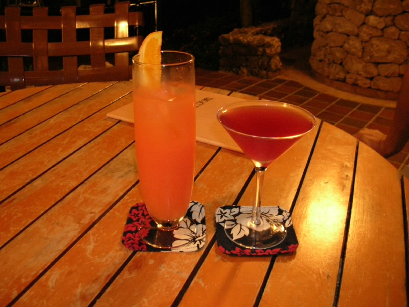 でもまだ最終日の夜はこれから。プールサイドやビーチをしばし散策。少し涼しい空気が気持ちいい。でもそういえば台風が近づいてきているので、ちょっと風は強めかもね。明日まではなんとか天気も持ちそうでよかったな。散策のあとは、プールサイドにあるバーでカクテルタイム。一杯サービスのチケットもまだ使ってなかったしね。沖縄らしくフルーツ入りのカクテルを楽しみましょう。