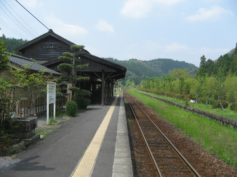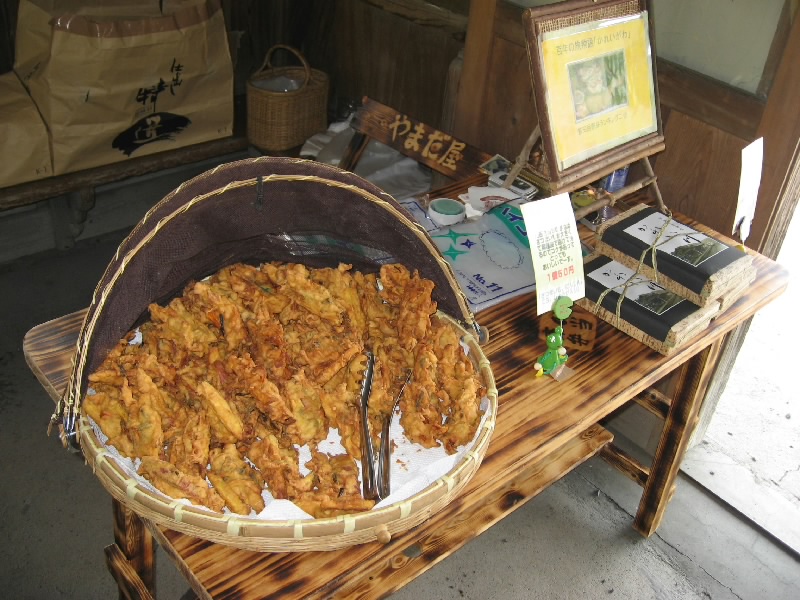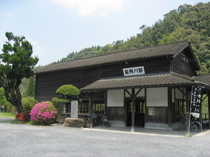 鹿児島市内まではバスがでているが、今日の最初の目的地は肥薩線嘉例川駅。空港から近いので、タクシーで行きましょう。空港の周りをぐるっと周り、狭い田舎道を少し走ると嘉例川駅に到着。ここは104年前からある木造建築の駅舎がなんとも風情のある駅だ。次の電車までまだ1時間以上あるので、ほとんど人はいない。駅そのものもいい感じなのだが、もうひとつのお楽しみは駅弁。地元の素材を生かした手作り駅弁は、一日の数が限られているため前もって予約済み。早速駅弁をゲットし、まずは一安心。と、おじさんが話しかけがてら、かごに入ったてんぷらのようなものをくれた。これは「がね」というもので、鹿児島のサツマイモをふんだんに使ったてんぷら。サツマイモの自然な甘さがなんとも優しく、おやつにもおかずにもなる一品だ。本来は売り物(50円!)なのだが、われわれは一番乗りだったのでサービスしてくれたのかな。その後しばらくは駅で写真を撮ったりしながらのんびりと過ごす。車で来て、写真だけ撮って帰っていく人もいる。有名な駅なんだね。今は無人駅だが、以前この駅に勤務されていたというおじいさんと話すことができた。今は名誉駅長として駅の管理を嘱託されているらしく、実は結構な有名人のようだ。今日はこんなにのんびりとした駅だが、明日は隣駅からここまで歩こうというイベントがあるらしく、駅前に出店もでてにぎやかになるとのこと。それはそれで楽しそうだが、まずはのんびりしたこの駅を楽しみたい。1時間に一本くらいしか電車が来ないので静かだし、田舎道に伸びた線路がいい感じだね。いつのまにやら、ぼちぼちと観光客が増えてきた。みんな次にくる「はやとの風1号」に乗るのかな。