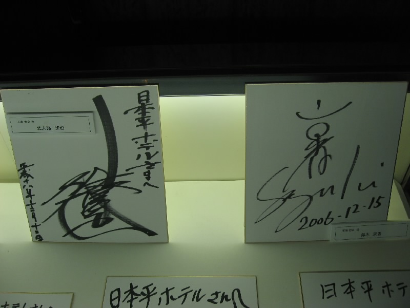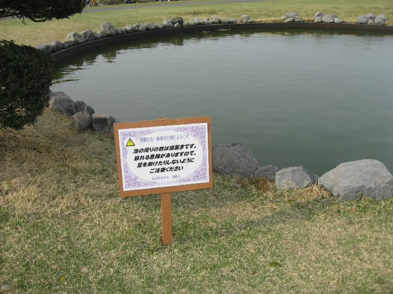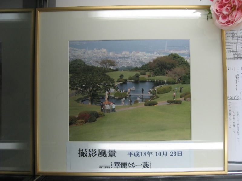 バスを乗り換え、日本平ホテルへ。結構山道を登ってきたようだ。晴れていれば富士山がきれいに見えるはずだけど、今日は残念ながら曇りで山は全く見えず。ここ日本平ホテルは「華麗なる一族」のロケ地。錦鯉の「将軍」のいる池や、製鉄所を見下ろす庭などがあるわけだ。神戸にこんなところないよ、とは思っていたけれど、静岡だったとは・・・たくさんの人がドラマのシーンを楽しんでいました。ホテル内には出演者のサインが飾ってあったけれど、キムタクのはなかった。ジャニーズはサインしないんだよね。 |