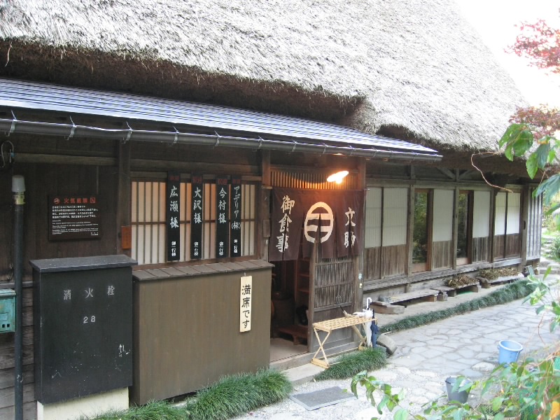お店をでると、なんだか人が多くなってきたな。「であい橋」を渡ると大きな駐車場があり、観光バスがどんどん来ているようだ。ちょうど紅葉シーズンだからね。「合掌造り民家園」というところがあり、ここは保護を目的にたくさんの合掌造りが並んでいる。人が住んでいるわけではないが、当時の様子が偲ばれる。火の見やぐらなどがあるのが面白いな。茅葺屋根なので、火がついたらあっという間に広がってしまうからね。民家園を出て、橋を渡って荻町集落へと戻る。かなり人は増えており、ここまで多いとどこかのテーマパークのようにも感じるなあ。写真は極力人がいないように撮っているが、実はかなりの賑わいなのです。