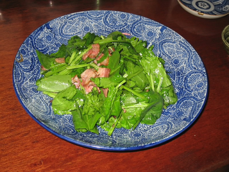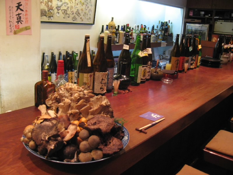 晩ごはんはどうしましょうか。まだ少し早めではあるが、昼は控えめにしているしどうせゆっくりするのでもう行きましょう。入れなくなっても困るしね。ということで近くある「肴」というお店に行って見ましょう。少し飲み屋街になっている中にそのお店はあった。もう既にお客さんが入っているようだし、外のメニューを見ても悪くなさそうなので入りましょう。席はあいているものの予約済みの席もあるようで、早く来てよかったかもね。さて、何にしましょうか。とりあえずビールをいただき、3種の突き出しとともに楽しむ。うん、突き出しのいい店はほかも美味しいはず、期待できそうです。今日のお薦めなど、店主らしき人が自ら説明をしてくれた。何かかなりこだわりのある店のようだね。とりあえずビールのおつまみとして、こだわりのホウレン草とキノコの天ぷらをいただく。少し時間がかかったが、味の濃いホウレン草をベーコンと軽く炒めたのは好みの味だし、キノコもまさに今が旬、立派なシメジや舞茸など、シャキシャキした歯応えがビールによくあう。