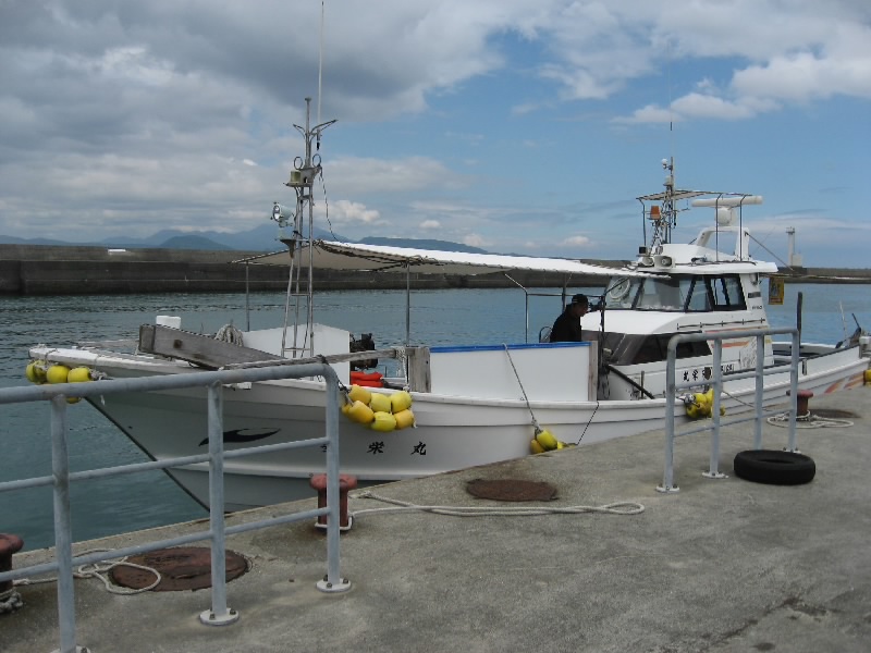 もうすぐ10時。そろそろ行きますか。ホテルをチェックアウトし、車に乗り込む。もう車の中はかなり暑くなっている。昨日来た道を引き返すように、海沿いの道を走っていく。通る車はあまりなく、快適なドライブだ。11時少し前、イルカウォッチングセンターに到着。まだ30分以上あるが、とりあえず受付を済ませる。受付には芸能人のサインや写真があり、V6や次長課長など、たくさんの人が来ているようだ。そういえばここのイルカウォッチングを初めて知ったのは、旅*旅ショーで次長課長のときだったな。船が出る時間まで待合室もあるのだが、あまりにも暑いのでもうしばらく車の中で休憩。せめて日陰に停められればいいのだが、そういう場所もないんだよね・・・そろそろ10分前。行きますか。待合室に入ると、何人かの人が出発を待っている様子。なぜか待合室内にはお弁当を作っているところがあり、妙に空気が油っぽいな。しばらくして、呼び出しが始まった。ようやくこれで船に乗れそうだ。