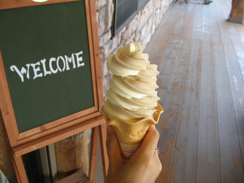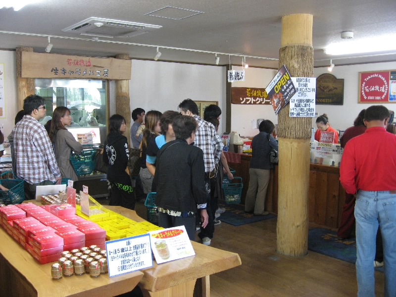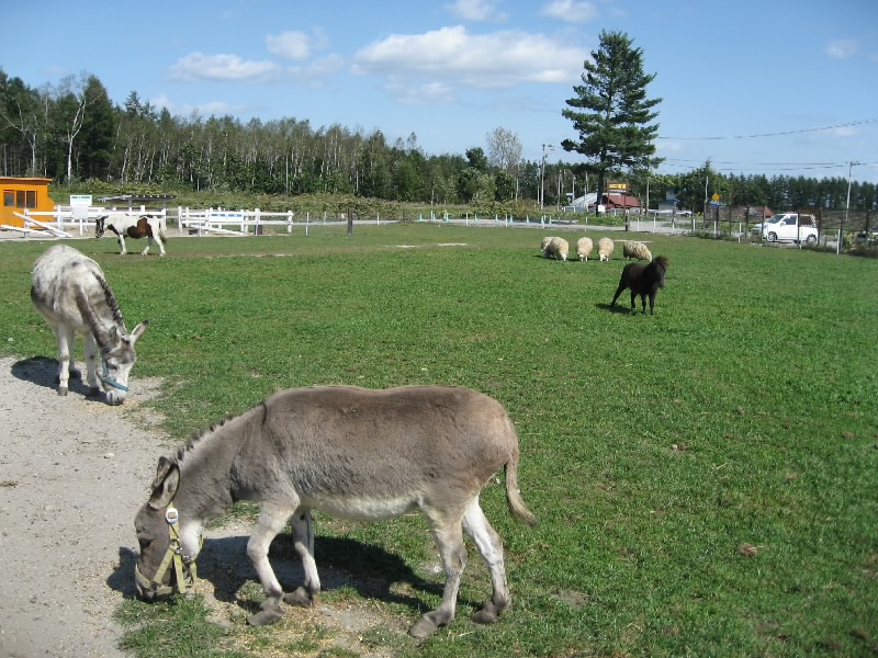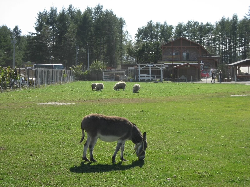 車で一時間弱、広い景色の中の快適なドライブを楽しみ、花畑牧場に到着。田中義剛が経営する、あの生キャラメルで有名なところだ。よくテレビでも見るしね。週末はかなり混みあうとのことだが、今日は平日、そこまででは無いだろう。でも駐車場には結構車が止まっていた。車を降りると、すぐ近くにヤギやヒツジが放し飼いになっているところがあった。よくみると、ロバもいるぞ。あれは・・・ロシナンテ?かつて電波少年で一世を風靡したあのロシナンテが、こんなところにいた。そういえばいろんなところに連れて行かれてたね・・・ここでゆっくり暮らしてね。さて、まずはショップへと行こう。中に入ると結構人がいる。いろんな商品があるなあと思ってみていると、欲しいと思っていたチーズ、カチョカバッロ発見。もう残り少ないようだったので、とりあえず2個キープ。その奥には、あのキャラメルがあった。千歳空港などではなかなか手に入らないらしいが、本家なのでまだまだ数はある。とはいえ3種類あるうちのホワイトは残り少ないし、他のも団体でも来たらどうなることやら。一人3個までなので、とりあえず3種類ずつゲットし、あとは他のお土産を選んで購入。これで一安心だな。買い物を終えてチーズのところを見ると、カチョカバッロは既に売り切れ、そして今日はもう入らないとの表示が。15分程到着が遅れてたら買えないところだったな。「とん田」が休んでいたのも、ある意味ラッキーだったかも。