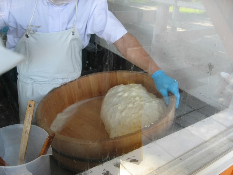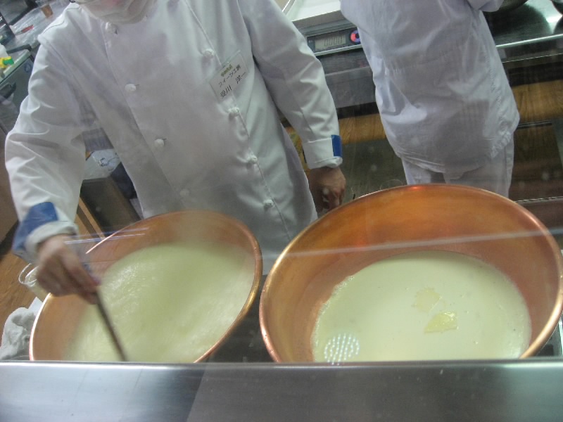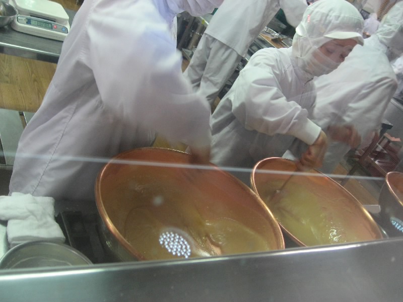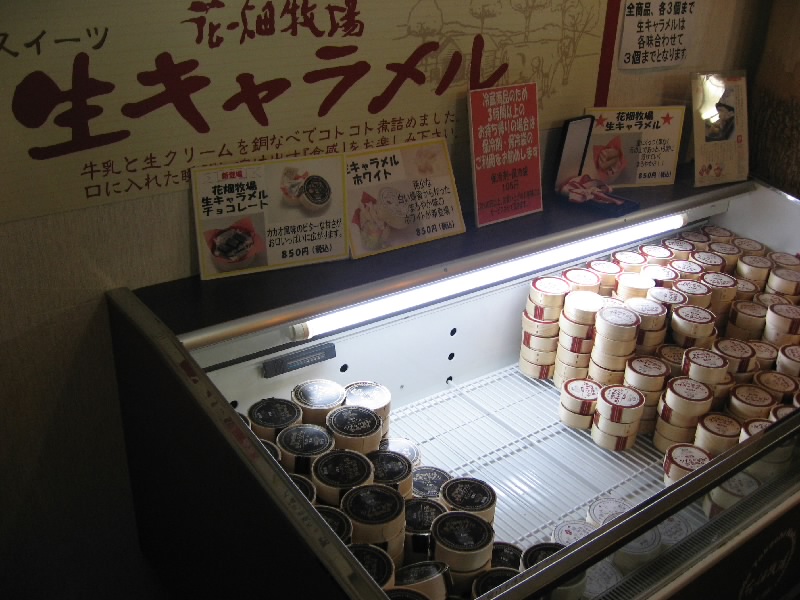 もう一度ショップへと入ろう。さっきより少し人が減ったようで、生キャラメルの作っているところを見るにはちょうどいい。銅鍋に人がついていて、へらでひたすらかき回している。次第に水分がなくなっていくと、キャラメル色になってくる。全部手作業、これは大変だなあ。ここまで有名になると、作るのが追いつかないだろうな。さっきの売り場を見ると、もうホワイトは売り切れ、チョコレートも残り少ない。ノーマルタイプはまだまだあるが、今から来る人はどれだけ買えるのかな。それにしても、義剛儲けてるなあ。なんでも年商数十億とか・・・