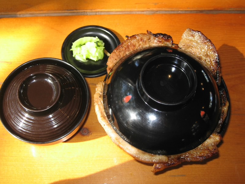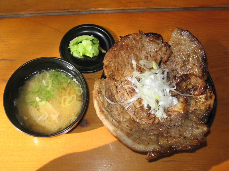 安心したので、生キャラメルのソフトクリームを食べる。北海道ミルクとのミックスだ。甘すぎず、それでいてキャラメルの風味があってなかなかおいしいソフトクリームだ。少し風がある中で食べるので、寒くなるけどね。そんなときに見つけたのが、ホエー豚丼の看板。ショップの奥にレストランがあり、そこで豚丼がいただけるとのこと。市内に比べるとちょっと高めだが、ちょうどお昼時だしまあいいでしょう、いただきましょう。ゆったりした店内で、席につく。メニューはほとんど選択肢がないので、豚丼のセットをオーダー。店の厨房からは、豚肉の焼ける香ばしい香りが漂ってきている。しばらくして、豚丼登場。丼からはみ出しているその豚肉は、ご飯が全く見えない状態。うまそうだ。早速厚切りの豚肉をいただく。お、うまいぞ。分厚いが柔らかい豚肉で、肉そのものの甘みと炭火焼の香ばしさでいい感じ。肉がたっぷりあるかと思ったが、するすると食べられてしまいました。ごちそうさまでした。これはまた機会があれば、是非「とん田」で食べてみたいものだ。